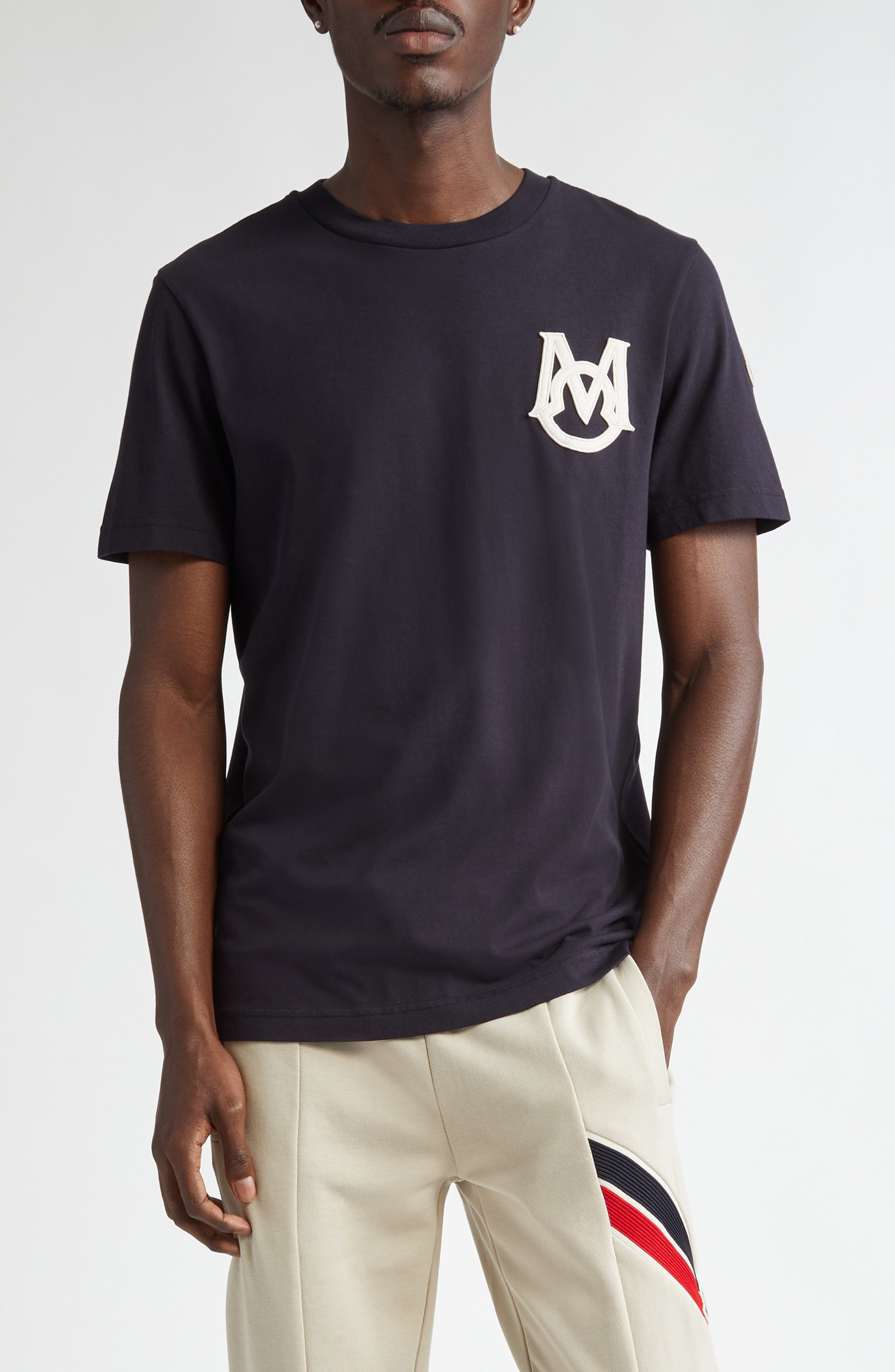 Moncler Monogram Logo Cotton T-Shirt in Navy Blue at Nordstrom