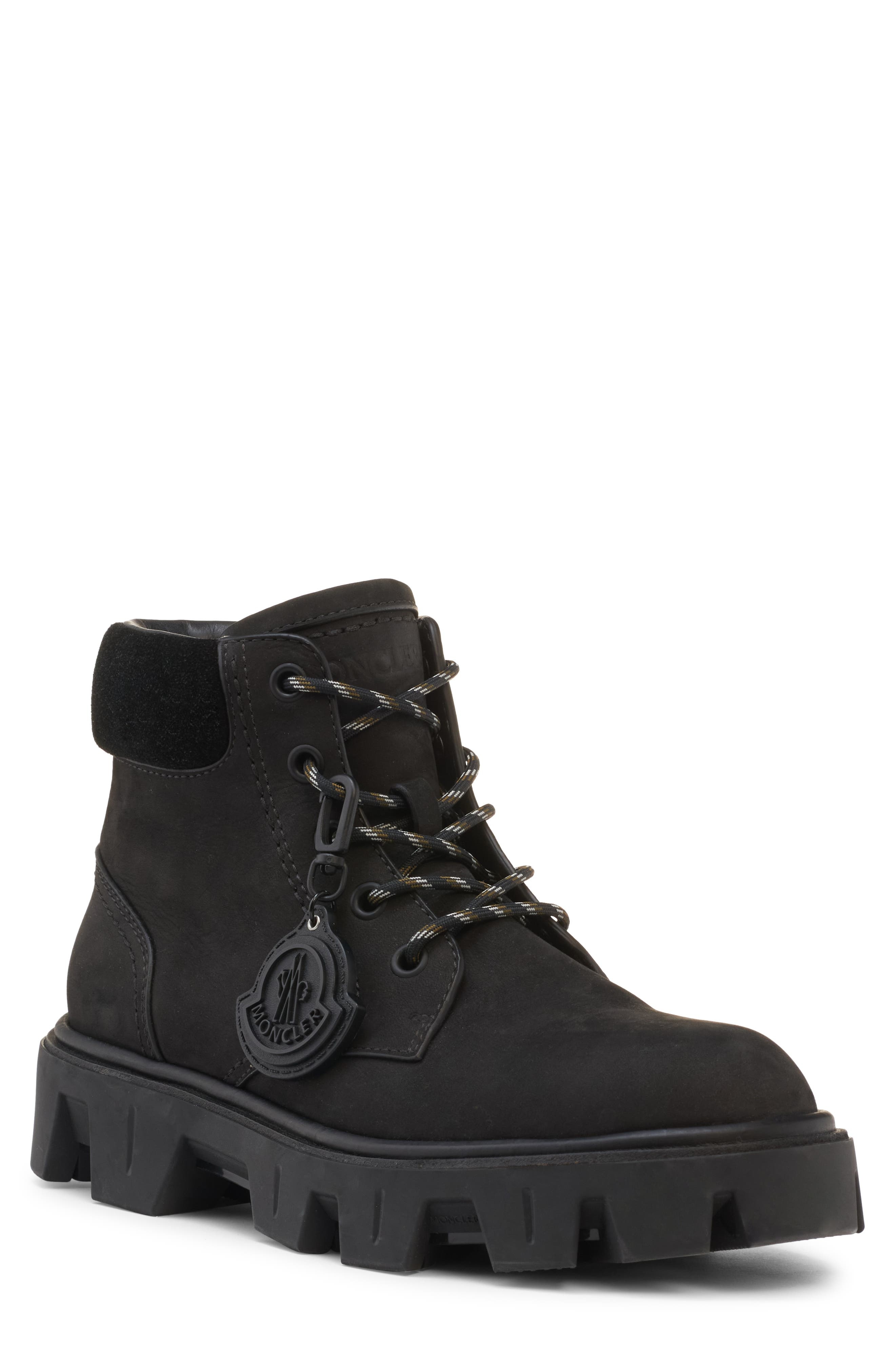 Inspired by Moncler's mountaineering heritage yet polished enough for around-town wear, this lace-up boot built from premium leather is set a rugged lug sole with logo lettering. Lace-up style Padded collar Leather upper/leather and textile lining/synthetic sole Imported Designer Shoes