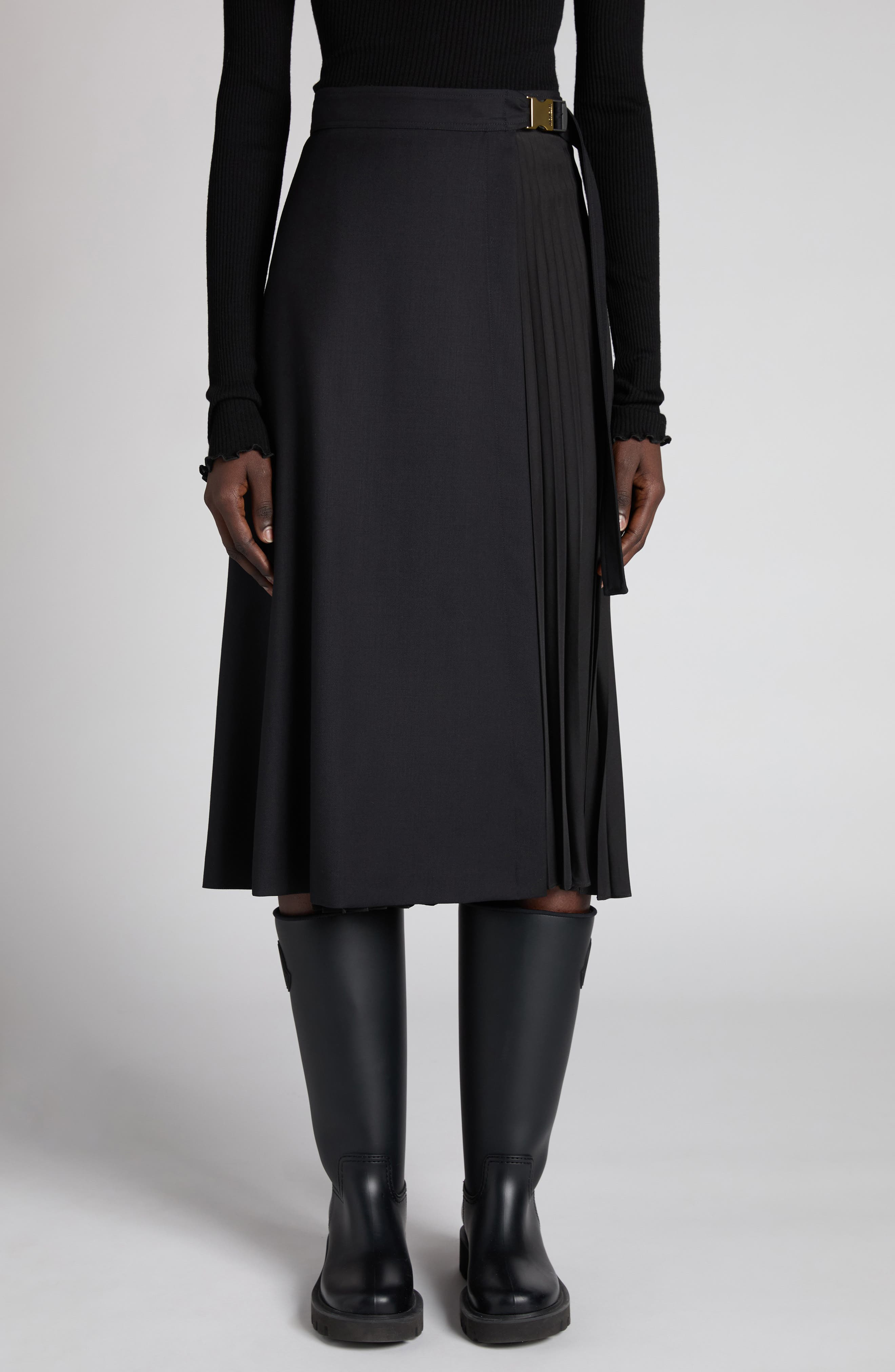 Moncler Pleat Detail Wool Wrap Skirt in Black at Nordstrom