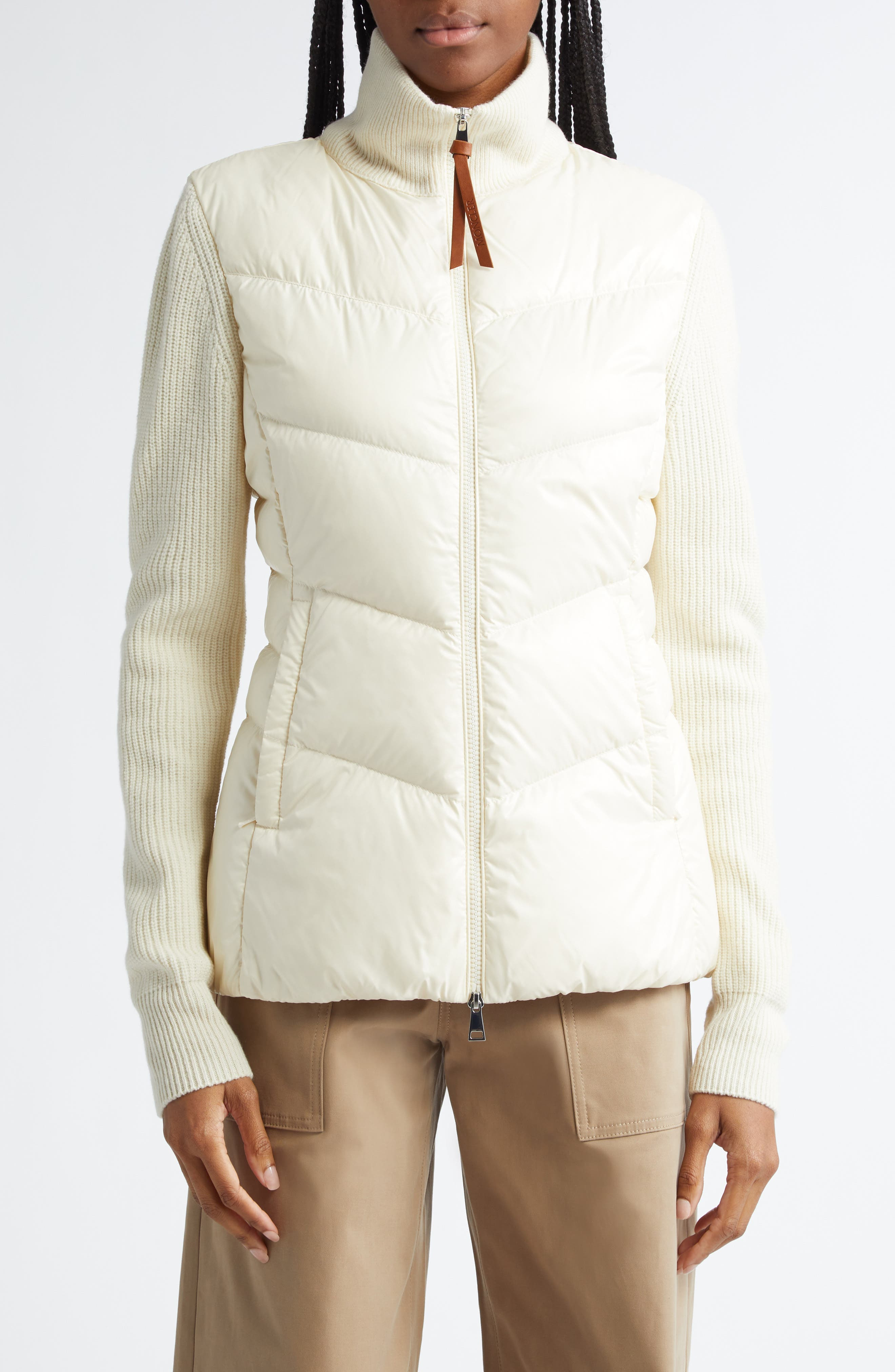 Moncler Quilted Down & Knit Cardigan in White at Nordstrom