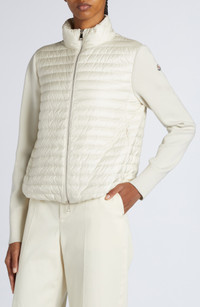 Moncler Quilted Down & Virgin Wool Knit Cardigan in Pearl White at Nordstrom
