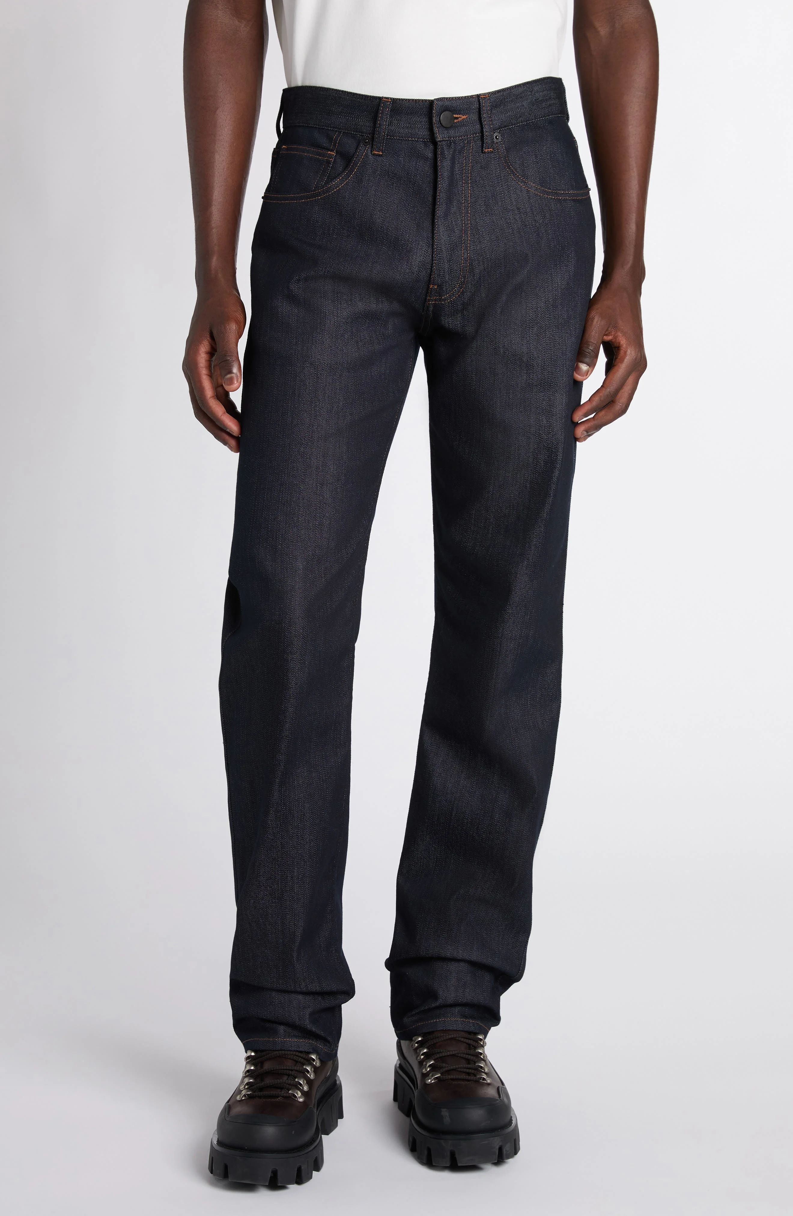 The Italian label brings its impeccable craftsmanship to timeless straight-leg jeans cut from dark-wash denim lightly kissed with softening stretch. Zip fly with button closure Five-pocket style 75% cotton, 24% polyester, 1% elastane Dry clean Imported Designer Clothing