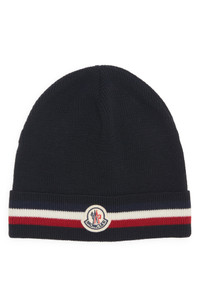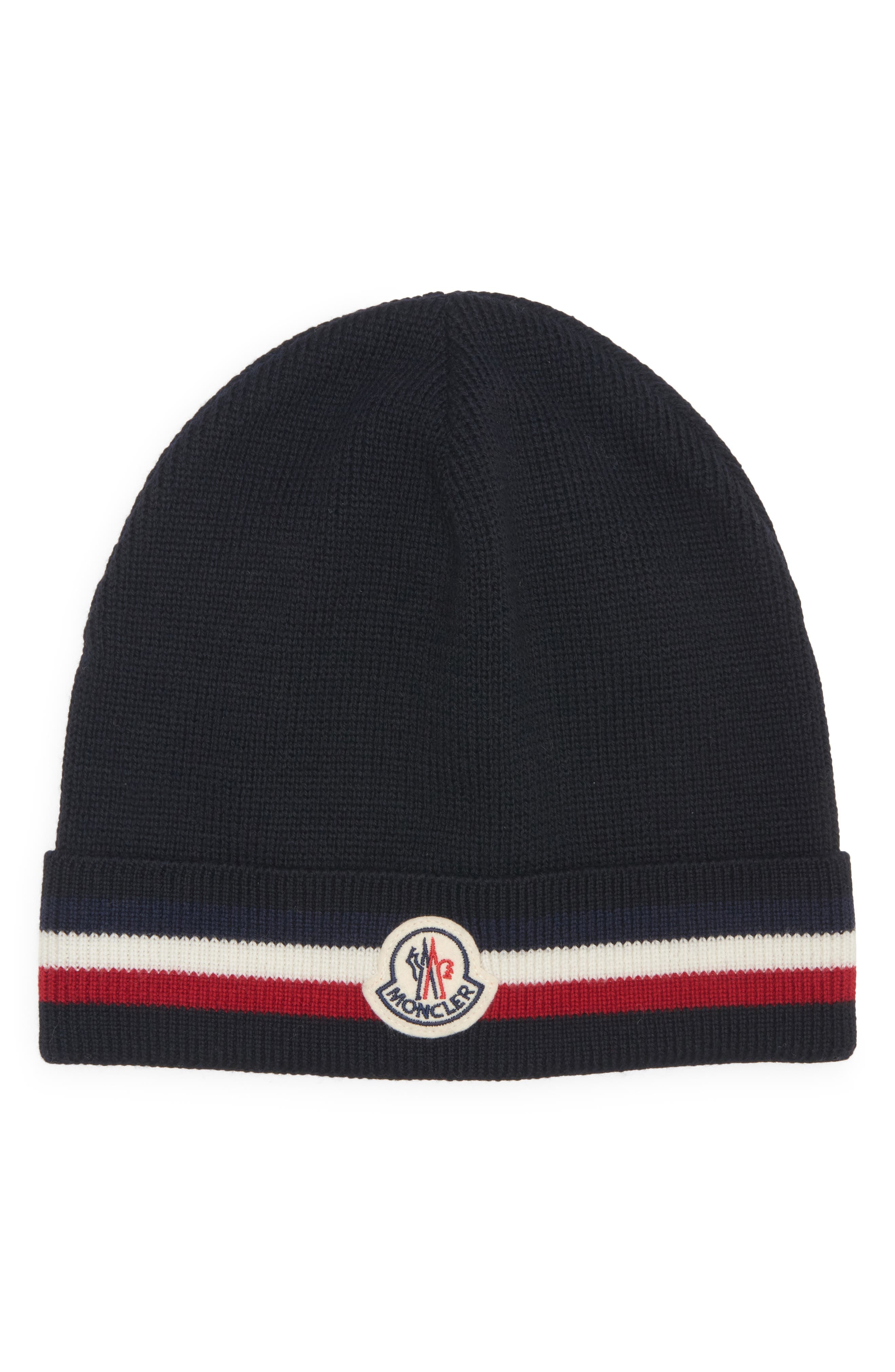 Moncler Tricolor Stripe Ribbed Wool Beanie in Navy Blue at Nordstrom