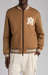Double the style, double the craftsmanship—this reversible down jacket merges function and luxury. Its letterman-inspired bomber silhouette features sleek nylon on one side and a mix of cotton fleece and water-repellent fabric on the reverse, while knit trims and a monogram patch complete its playful varsity-inspired edge. Two-way front-zip closure Blade collar Front snap-welt pockets Water repellent Reversible, with 90% down, 10% feather fill (Romania) 100% cotton with 100% polyester sleeves and 100% nylon reverse Hand wash, dry flat Made in Romania Designer Clothing