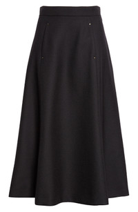 Subtly applied logo silhouettes frame the on-seam pockets via metal pins and brand the back with a tonal leather patch on this full-cut A-line midi skirt made from high-quality virgin wool. Hidden zip closure On-seam pockets Lined 100% virgin wool Dry clean Imported Designer Clothing