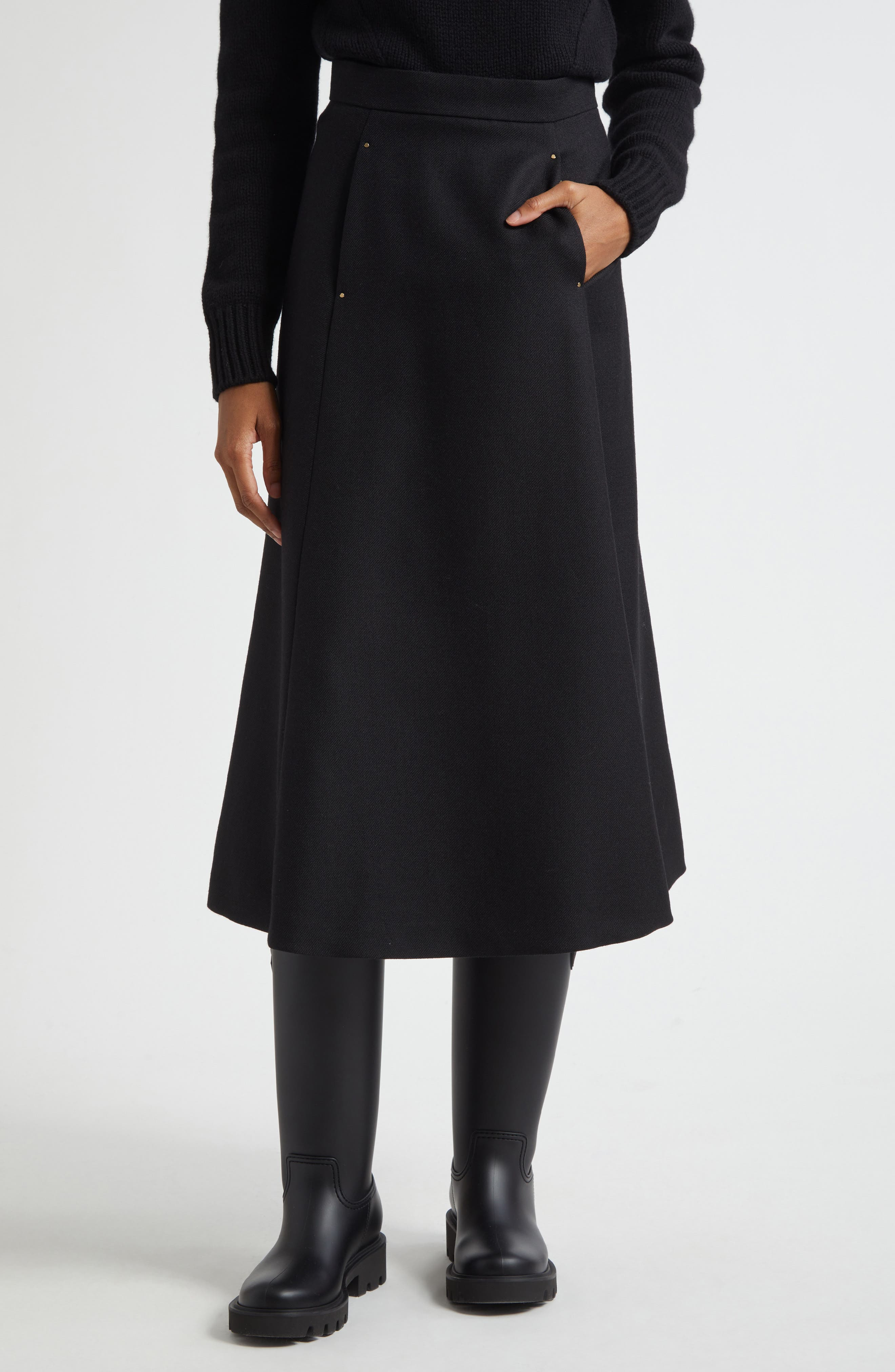 Moncler Virgin Wool A-Line Midi Skirt in Black at Nordstrom