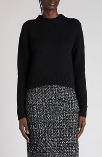 Introduce peak style to your capsule wardrobe with this classic crewneck sweater knit from a rich blend of luxuriously soft virgin wool and cashmere yarns. Crewneck Long sleeves Ribbed cuffs and hem 90% virgin wool, 10% cashmere Dry clean Imported Designer Clothing