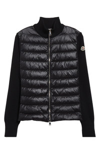 Moncler Wool Knit & Down Cardigan in Black at Nordstrom