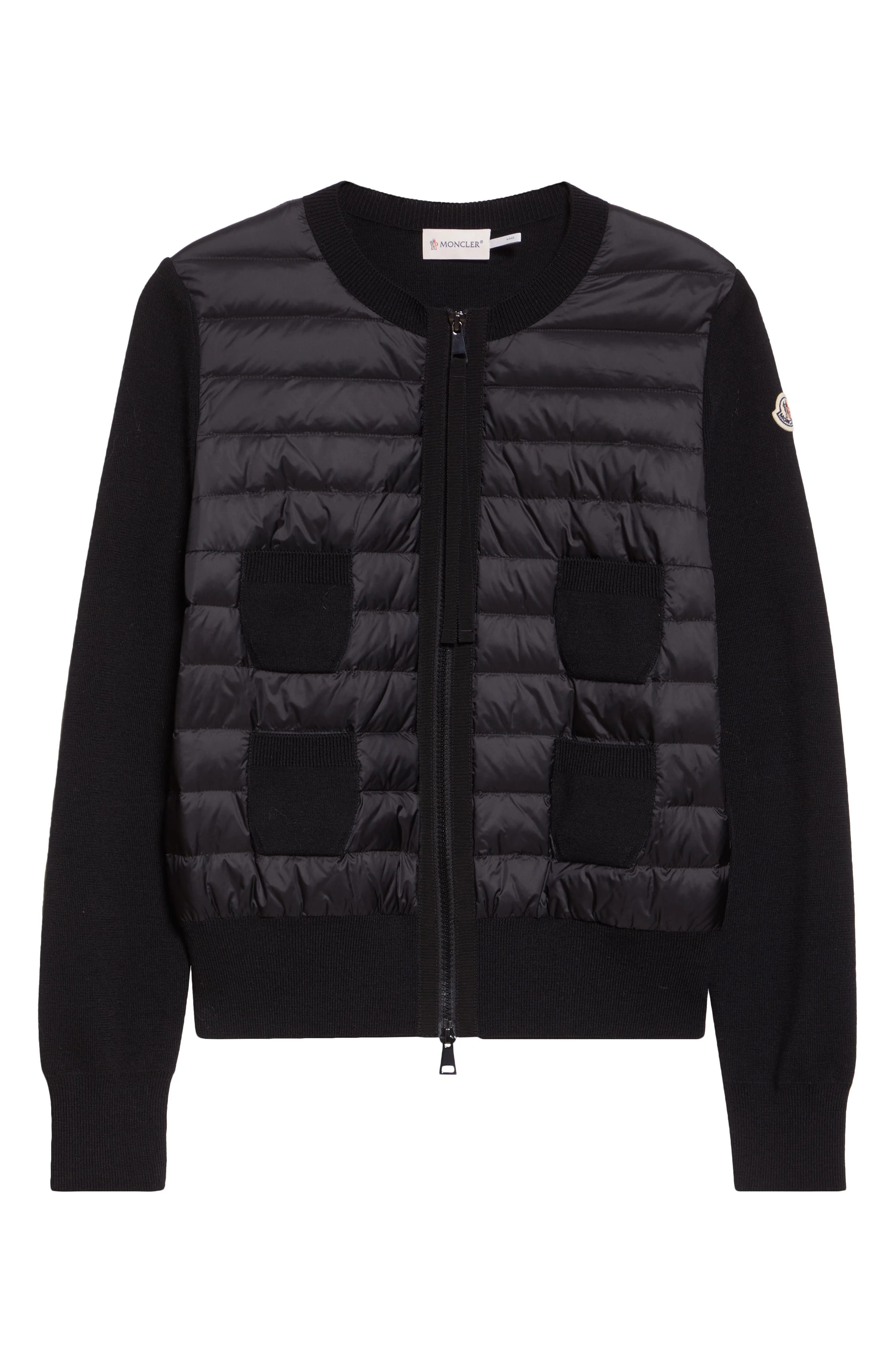 Moncler Wool Knit & Quilted Down Cardigan in Black at Nordstrom