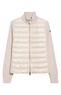 Moncler Wool Knit & Quilted Down Cardigan in Mother Of Pearl at Nordstrom