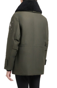 Moose Knuckles Aurora Water Repellent Genuine Shearling Lined 800 Fill Power Down Jacket in Dark Oli