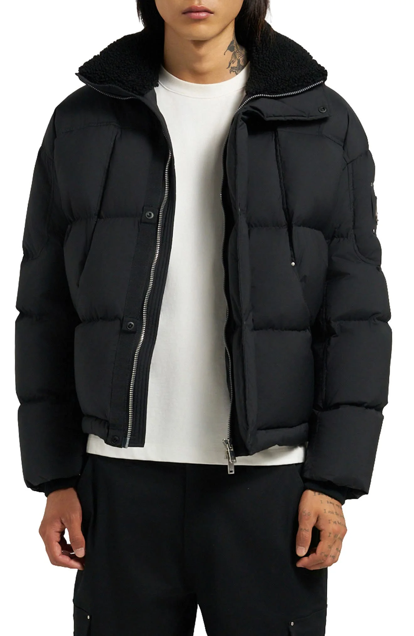 Moose Knuckles Everest Fleece Collar Down Puffer Jacket in Black at Nordstrom