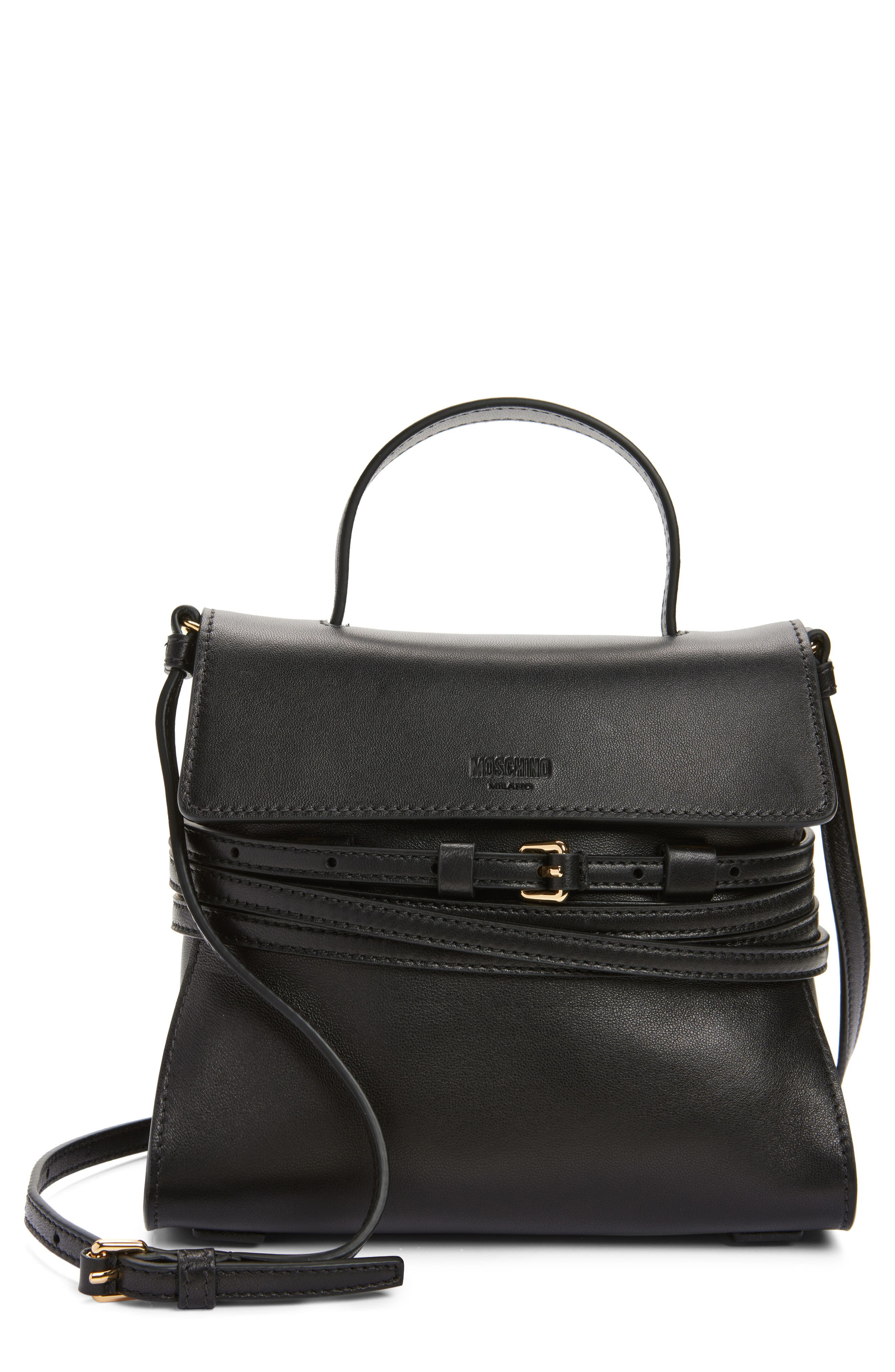 Moschino Small Tie Me Leather Top Handle Bag in Black at Nordstrom