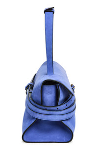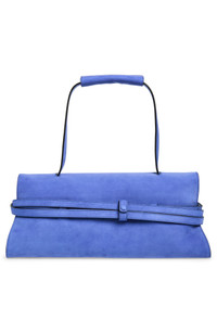 Extensive belting wraps this east/west bag crafted in Italy from sheepskin leather and fitted with a padded strap at the shoulder. Magnetic-snap flap closure Shoulder strap with snap-closure pad Interior zip and wall pockets Removable, decorative belt Leather Made in Italy Designer Handbags