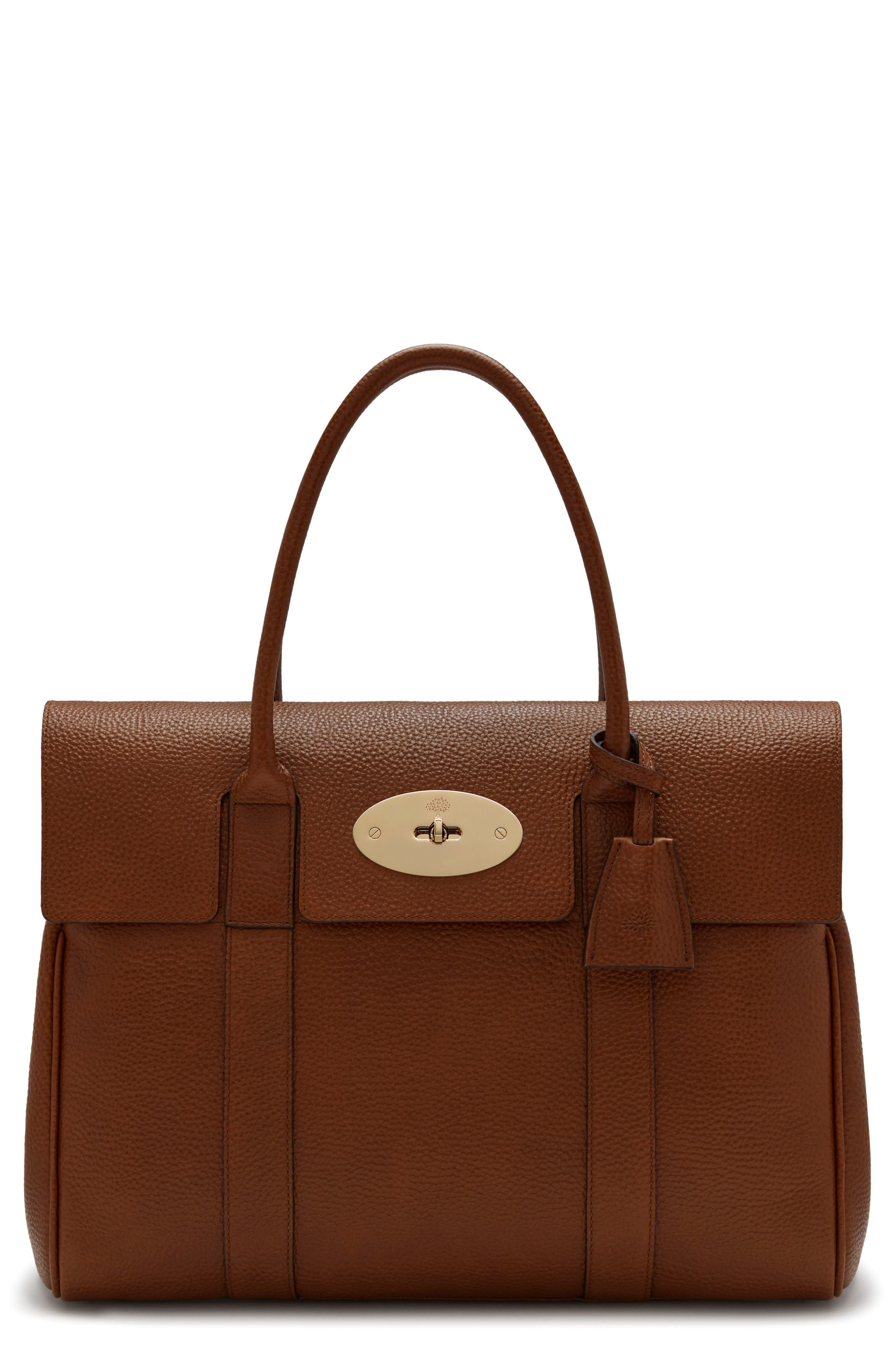 Mulberry's postman's lock adds to the polish of a structured satchel crafted from richly grained Italian calfskin leather that becomes even softer over time. Adjustable wraparound belting expands the sides when you need extra space. Turnlock flap closure Top carry handles Interior zip, wall and smartphone pockets Structured silhouette with flat base and protective metal feet Unlined Leather Made in the UK Designer Handbags One or more major components contains at least 50% leather sourced from a tannery that has achieved a Leather Working Group rating for its energy use, waste production and water treatment