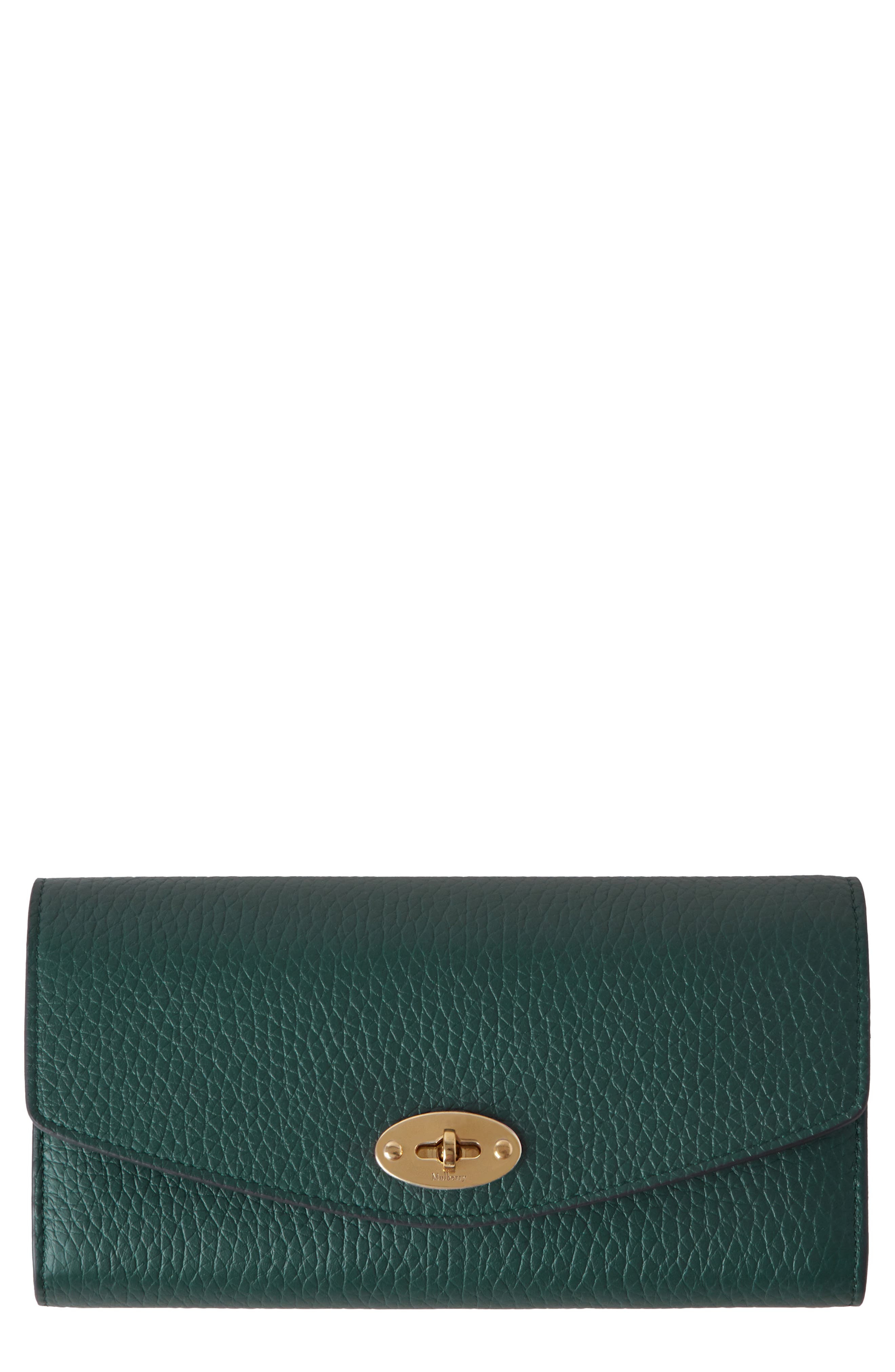 Featuring the label's iconic postman's lock, this elegant wallet made from richly pebbled leather boasts ample storage space to secure cards and cash. Turnlock closure Exterior card slot Interior zip pocket; currency pocket; card slots Leather Imported Designer Handbags
