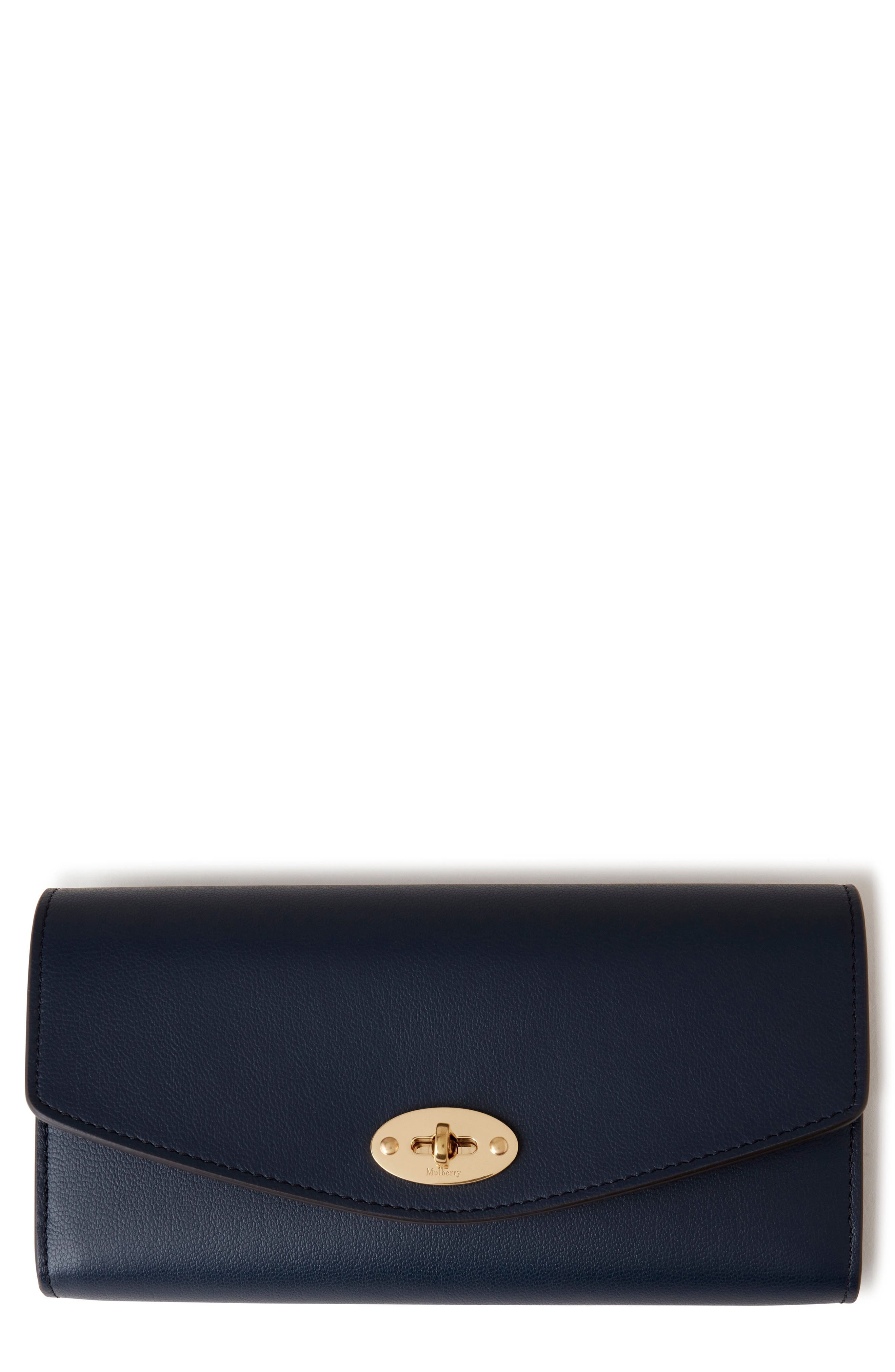 Featuring the label's iconic postman's lock, this elegant wallet made from richly grained leather boasts ample storage space to secure cards and cash. Turnlock closure Exterior card slot Interior zip pocket; currency pocket; card slots Leather Imported Designer Handbags