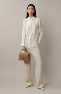 The label's new Foundry Lock-a daliesque twist on their iconic Postman's Lock-distinguishes this structured top-handle bag crafted in high-shine leather. Turnlock closure Top carry handle; removable, adjustable crossbody strap Exterior slip pocket Interior wall pocket Structured silhouette with flat base for stability Napa-leather lining Leather Made in Turkey Designer Handbags