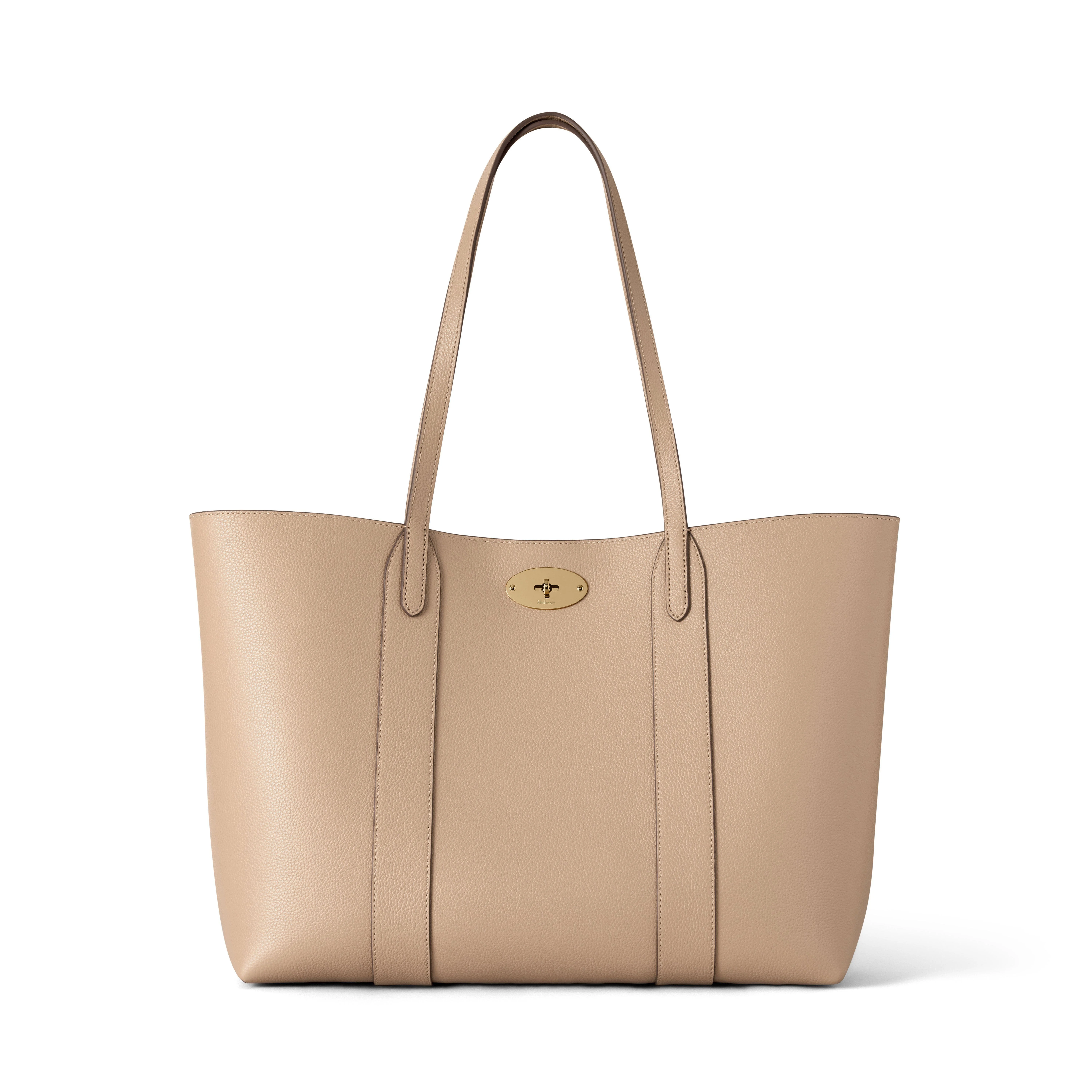 The perfect partner for modern lifestyles, the Bayswater Tote is spacious enough to fit everything from an iPad to a pair of shoes. This classic style closes with our signature Postman’s Lock and features a luxurious suede lining. A detachable internal pocket is ideal for safely storing the essentials. Postman's Lock closure Soft Gold hardware finish Two top leather handles Main internal compartment Internal detachable pouch featuring foil embossed Mulberry signature Suede lining 11¾"H x 19¼"W x 6"D Handle drop: 10¼" Weight: ½kg, approximately