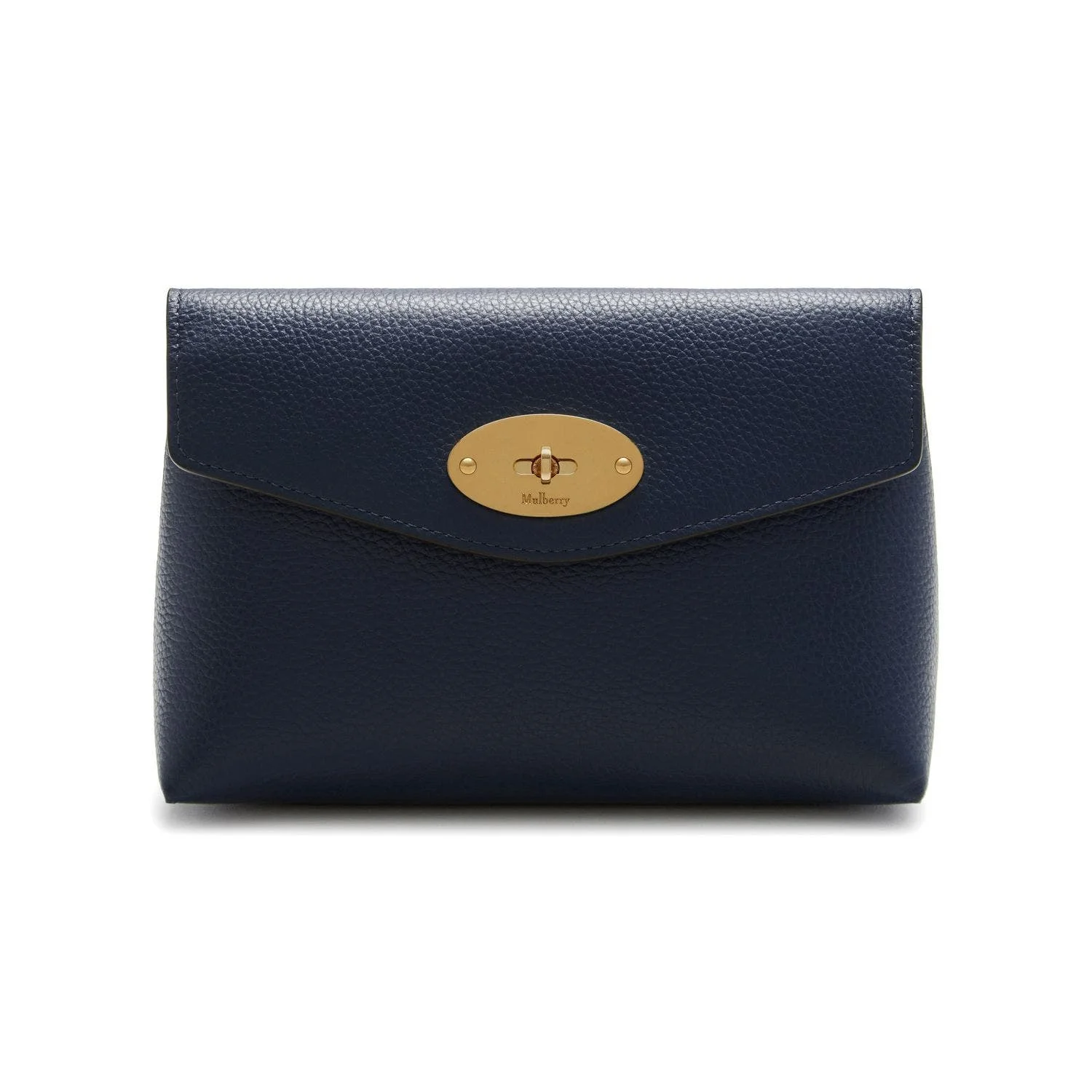 Keep your cosmetics tucked away with the Darley Cosmetic Pouch. Crafted from Mulberry's signature grained leather, it is finished with the iconic Postman's Lock. Lined with a foil-embossed Mulberry signature interior, it is a compact travel size to carry make-up essentials. One flap with Postman's Lock closure Internal foil embossed Mulberry signature One main compartment Brass component finish PU lined Width: 7¼", Height: 5", Depth: 2½" A soft cow leather with a small printed grain effect. The leather is lightly finished to protect the grain surface.