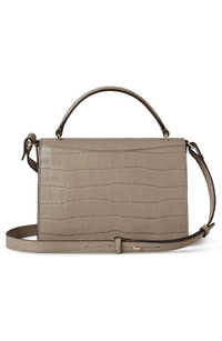 The label's new Foundry lock brings contemporary asymmetry to this compact top handle bag shaped from croc-embossed leather. Turnlock flap closure Top carry handle; removable, adjustable crossbody strap Exterior slip pocket Dual interior compartments with center divider Structured silhouette with flat base for stability Leather Made in Turkey Designer Handbags