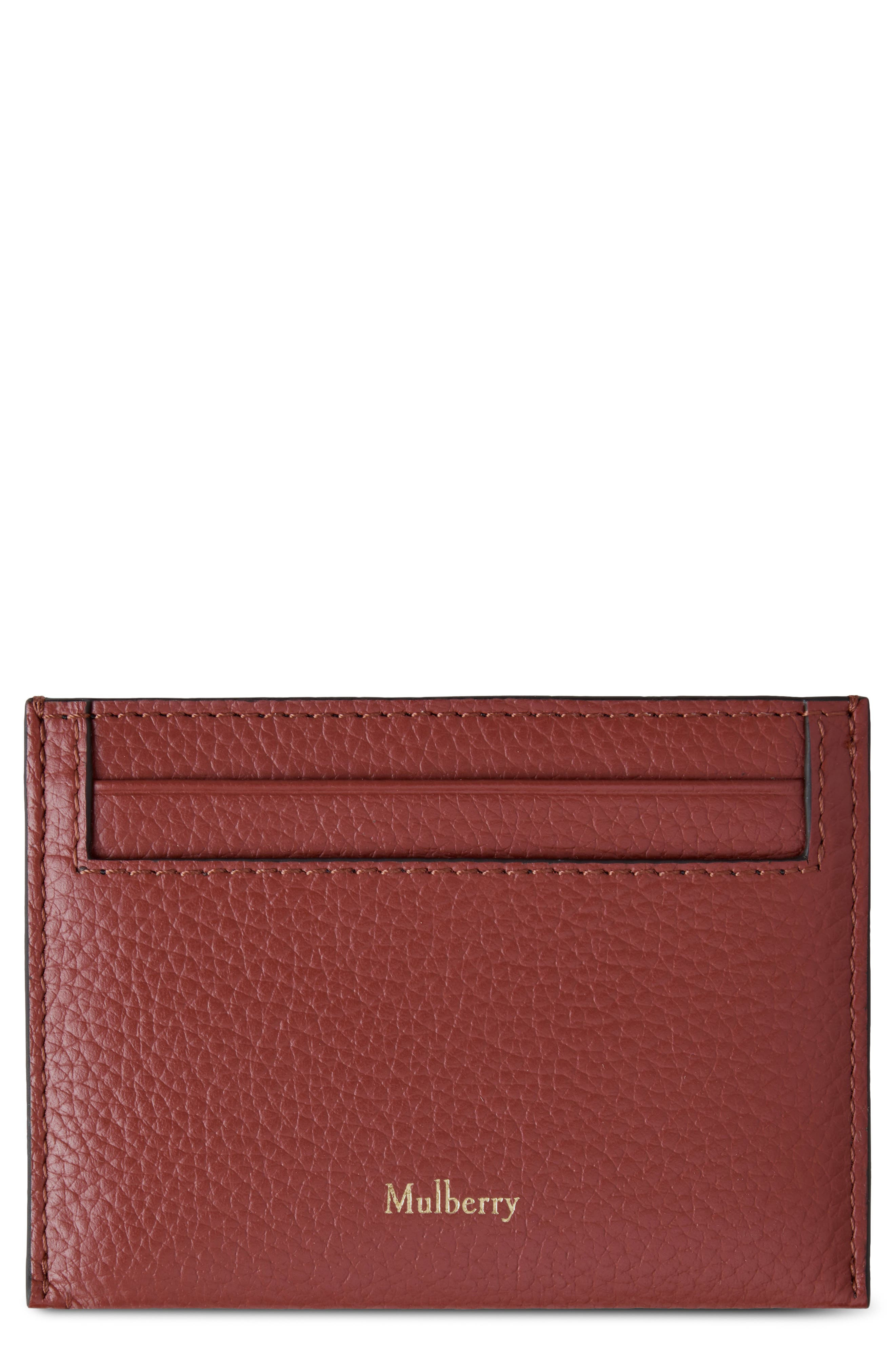 Mulberry’s logo and namesake tree are beautifully foil-stamped onto a grained calfskin leather card case that's slim enough to fit in your pocket. Four exterior card slots; center slip pocket Leather lining Imported Designer Handbags One or more major components use at least 50% leather sourced from a tannery that has achieved a Leather Working Group Gold rating for energy use, waste production and water treatment
