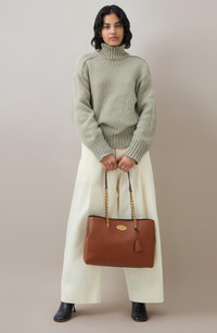 The label's signature Postman's lock secures this structured bag fashioned from richly grained leather with a pull-through chain-and-leather strap. A herringbone-woven lining and practical zip pocket complete this tasteful tote. Turnlock closure Pull-through chain-and-leather strap Interior zip pocket Lined Leather Made in the UK Designer Handbags