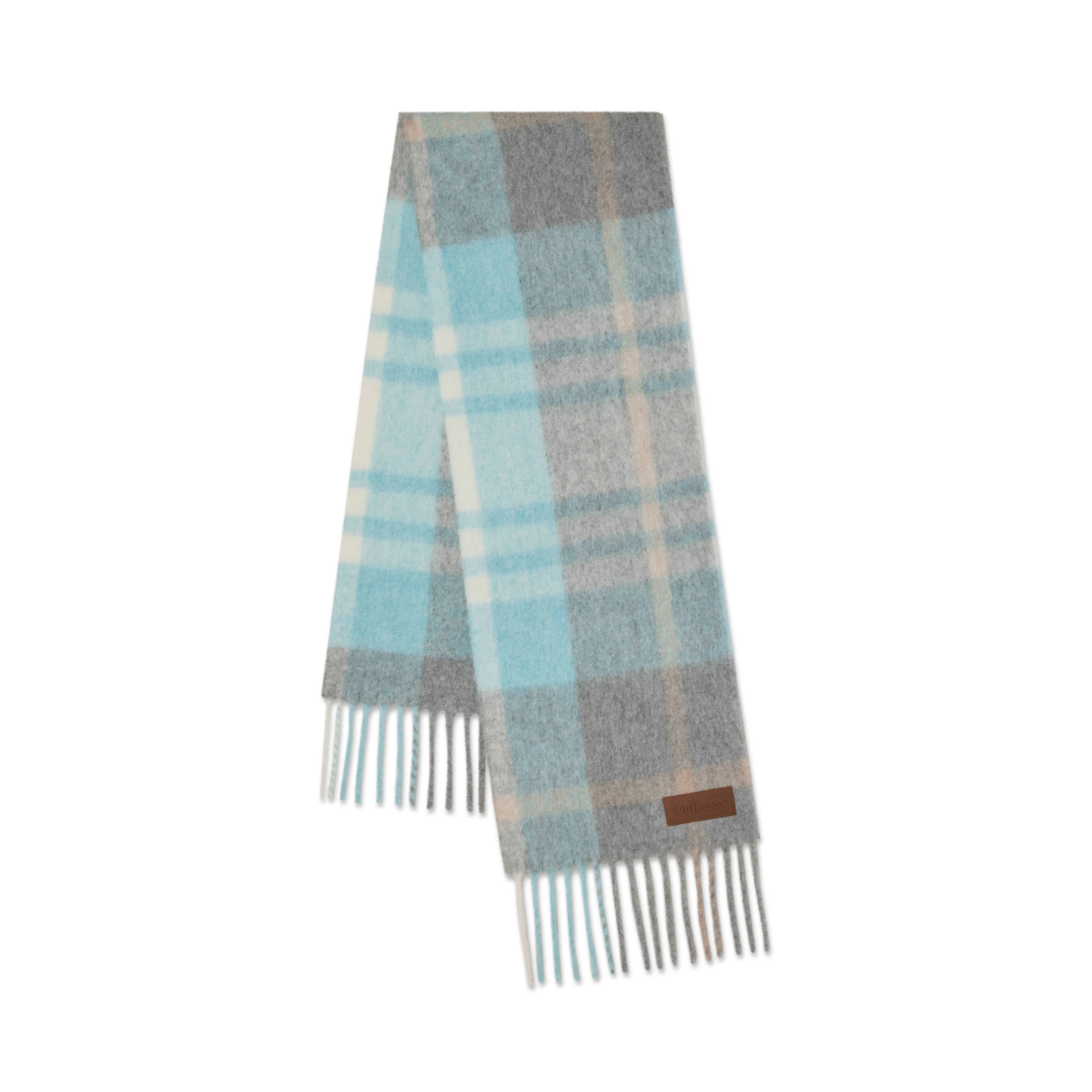 Oversized Check Textured Scarf Grey & Light Blue Wool Blend