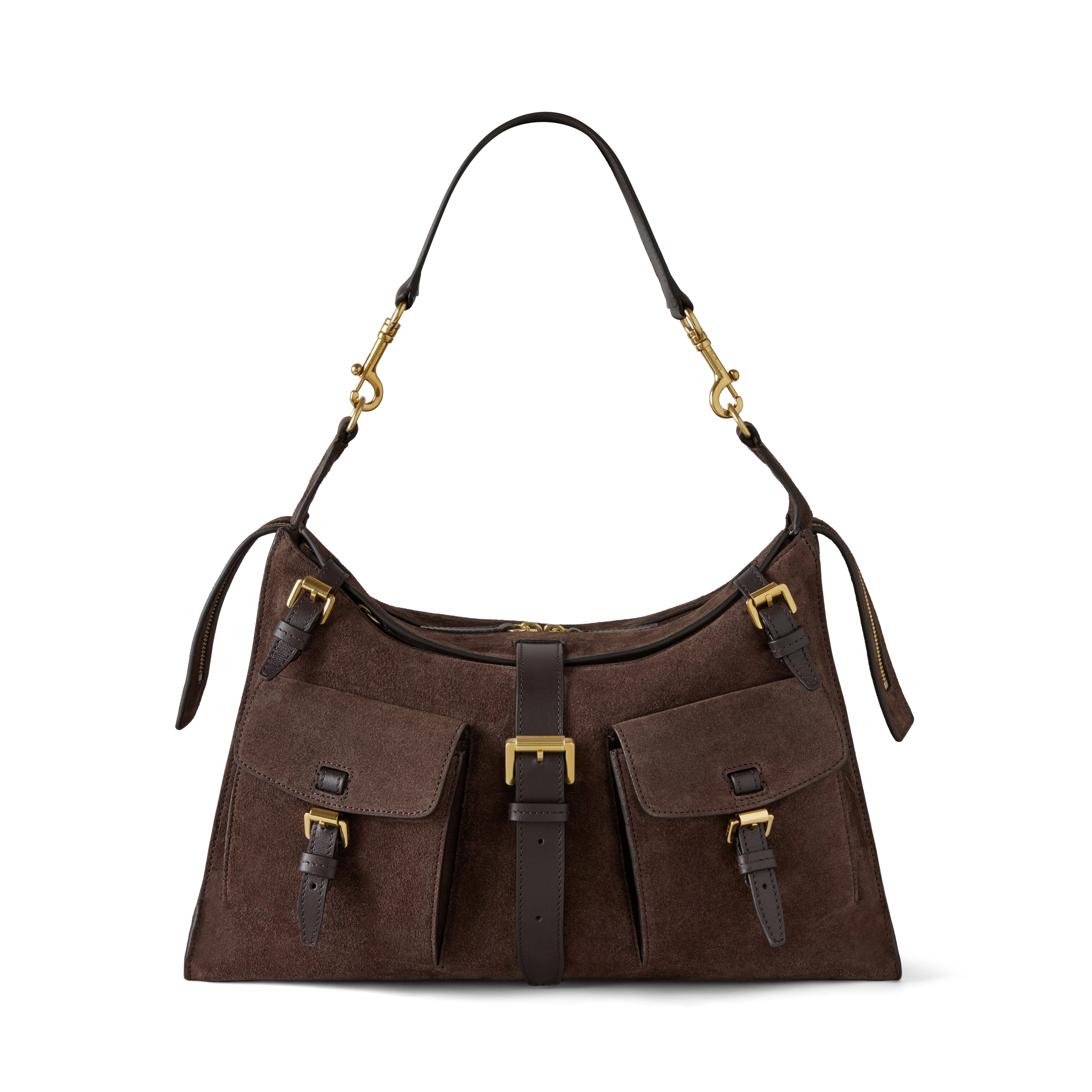 An icon returns. A modern take on our 2004 city style, the Roxanne Shoulder bag takes all the Y2K attitude of the original and updates it, with brass buckling, streamlined details, and clip detailing on the top handle. To be worn over the shoulder, the Roxanne features two front pockets ideal for smaller items, as well a spacious main compartment. Brass hardware finish Shoulder strap with clip detailing One internal slip pocket Two external front pockets with magnetic closure Zip closure Buckle detailing 11¼"-14¾"W x 7½"-9¾"H x 3" - 5"D Handle Drop: 11" Weight: ¼kg, approximately