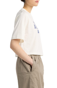 Bold logo details pop against the sunwashed cotton of a T-shirt designed with a slightly cropped hem emphasizing its boxy, relaxed fit. Wear it layered or on its own whether you're working out, going out or just hanging out. Crewneck Elbow-length sleeves 100% cotton Hand wash, line dry Imported