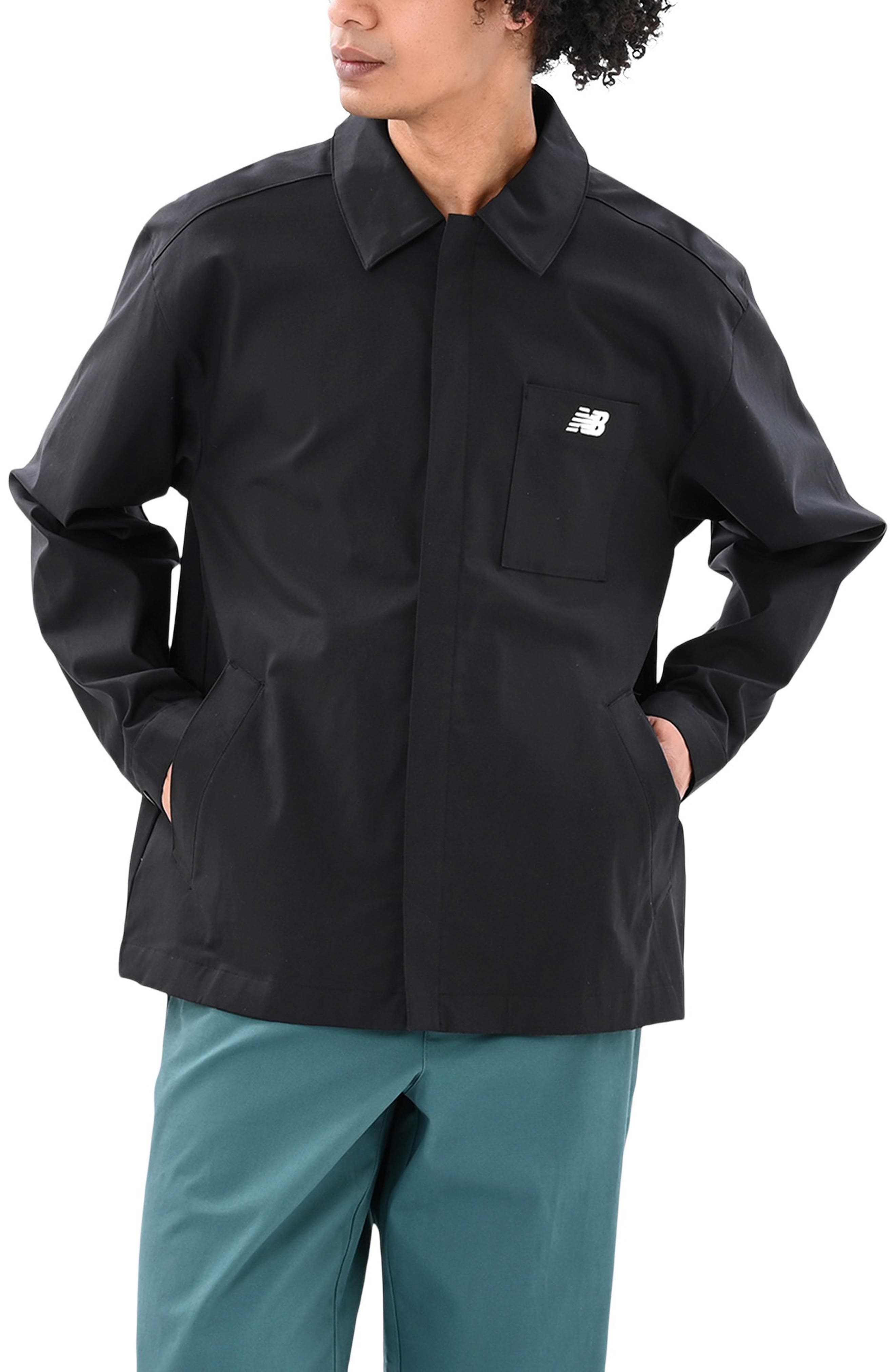 Crisp, water-repellent twill made of cotton and recycled fibers keeps you dry and comfortable in a coach's jacket that's sized for easy layering in cool, rainy weather. The covered front zipper helps hold the weather at bay, while a touch of added stretch enhances the smart, go-to appeal.Crafted in celebration of New Balance's annual Grey Days, this jacket features classic detailing representing the brand's dedication to craft, quality, and its timeless presence in the lives of athletes and fans alike. Hidden front zip closure Spread collar Adjustable snap cuffs Chest patch pocket; front welt pockets Durable water-repellent (DWR) finish 70% cotton, 27% recycled nylon, 3% spandex Hand wash, line dry Imported