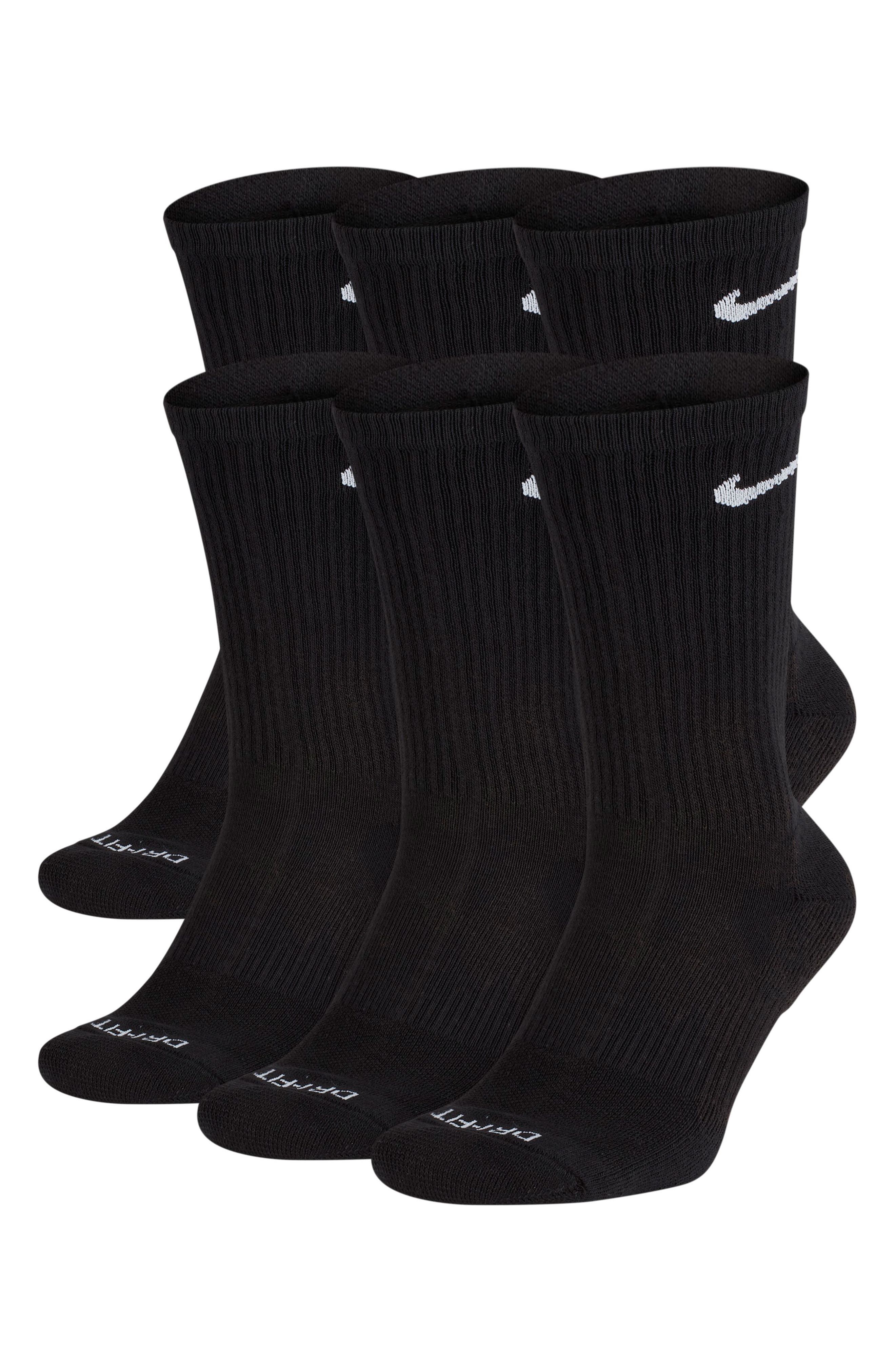 Sweat-wicking Dri-FIT knit with breathable mesh at the top of the foot and a fit-enhancing arch band ensure cool comfort in these cushioned crew socks. Pack of six assorted pairs Dri-FIT moisture-wicking technology Cotton/polyester/spandex/nylon Machine wash/tumble dry Imported
