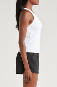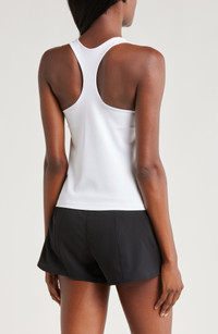 A built-in shelf-bra keeps you supported in this racerback tank top cut with signature Dri-FIT technology for cool, dry comfort as you work up a sweat. 20 1/2" length (size medium) Scoop neck Racerback Built-in shelf-bra Dri-FIT moisture-wicking technology 82% polyester, 18% spandex Machine wash, line dry Imported