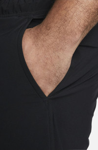Stretchy, sweat-wicking fabric takes you from workouts to distance runs in all-activity shorts fitted with pockets for your keys, energy gels and smartphone. They're cut with room to move in a fit that stays out of your way in the gym, on the roads or in the yoga studio. 5" inseam; 28" leg opening; 13 1/2" front rise; 16" back rise (size Medium) Dri-FIT moisture-wicking technology 86% polyester, 14% spandex Machine wash, tumble dry Imported