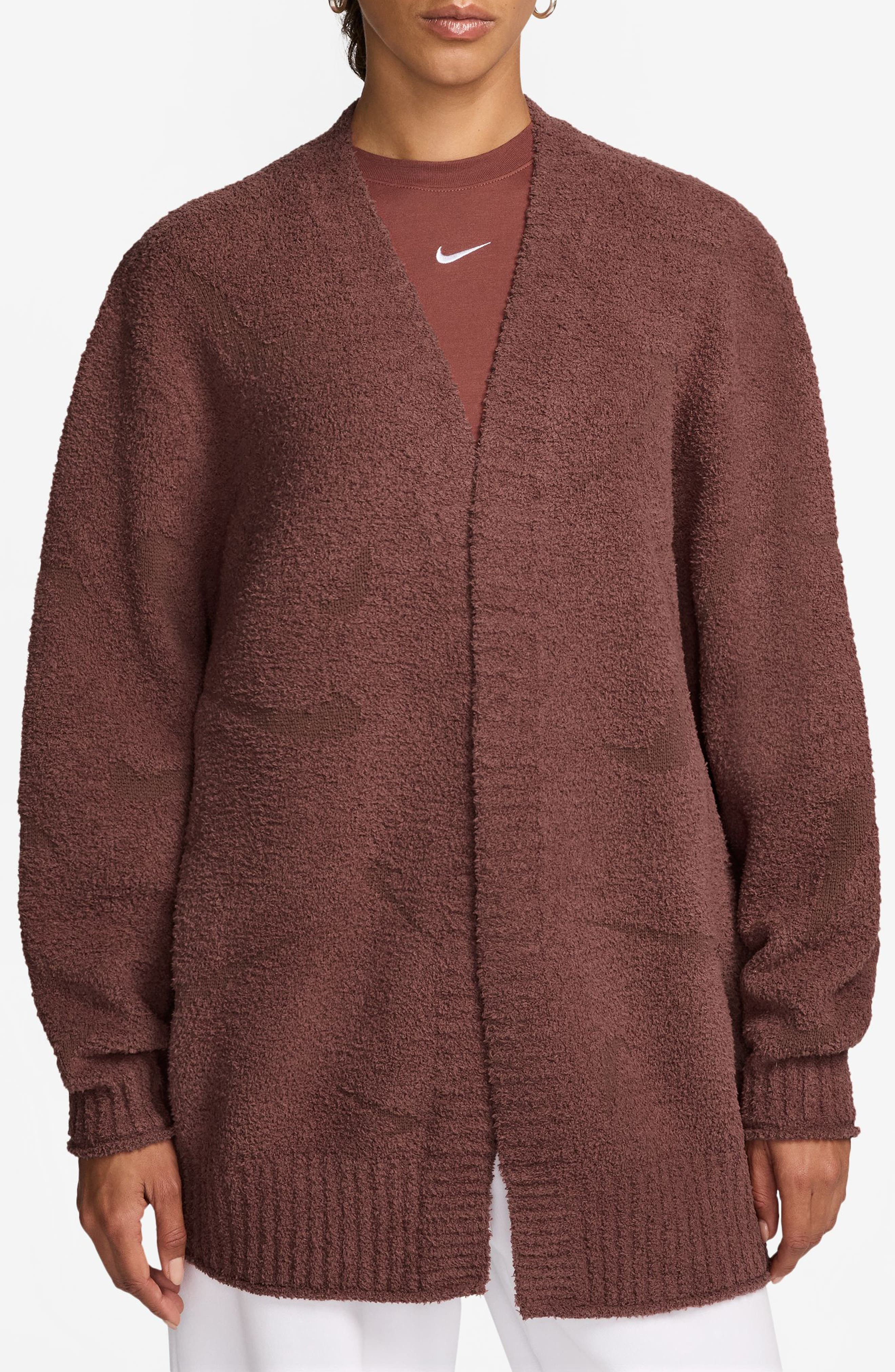 Nike Phoenix Oversize Bouclé Cardigan in Brown at Nordstrom