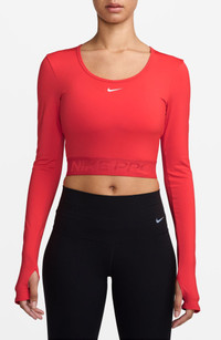 Nike Pro Dri-FIT Long Sleeve Crop T-Shirt in Lt Crimson/Ember Glow/White at Nordstrom