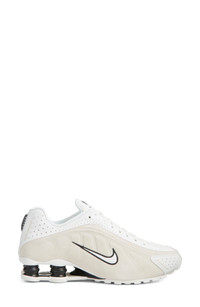 Columnar cushioning compresses and rebounds with every step in a 2001 runner reissued as a sneaker that turns impact absorption into bold architecture. Aerodynamic tooling and a sleek finish inspired by space-exploration gear bring forward momentum to the look, while Nike's iconic waffle tread transformed into circular lugs grounds the sole in both the present and the future. Cushioning: absorbs impact and distributes weight for consistent, buoyant comfort under each step Lace-up style Removable, cushioned insole Shox technology distributes the weight of every step to provide even, responsive cushioning Reflective details enhance visibility in low light or at night Synthetic and textile upper and lining/rubber sole Imported