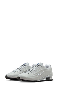Columnar cushioning compresses and rebounds with every step in a 2001 runner reissued as a slim, streamlined sneaker that makes an art of impact absorption. Aerodynamic tooling brings forward momentum to the breathable mesh upper, while Nike's iconic waffle tread transformed into circular lugs grounds the sole in heritage details and modern traction. Cushioning: absorbs impact and distributes weight for consistent, buoyant comfort under each step Lace-up style Nike Shox compression columns absorb impact and rebound strong for superior, zero-gravity cushioning Textile and synthetic upper and lining/rubber sole Imported