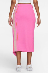 This wrap-inspired midi skirt from Nike's premium lifestyle line features an aesthetic focused on street culture and the label's athletic heritage in a soft, ribbed knit with sporty side stripes. Elastic waist 69% polyester, 26% cotton, 5% spandex Machine wash, dry flat Imported Nordstrom x Nike: A curated lifestyle destination where fashion is the ultimate sport