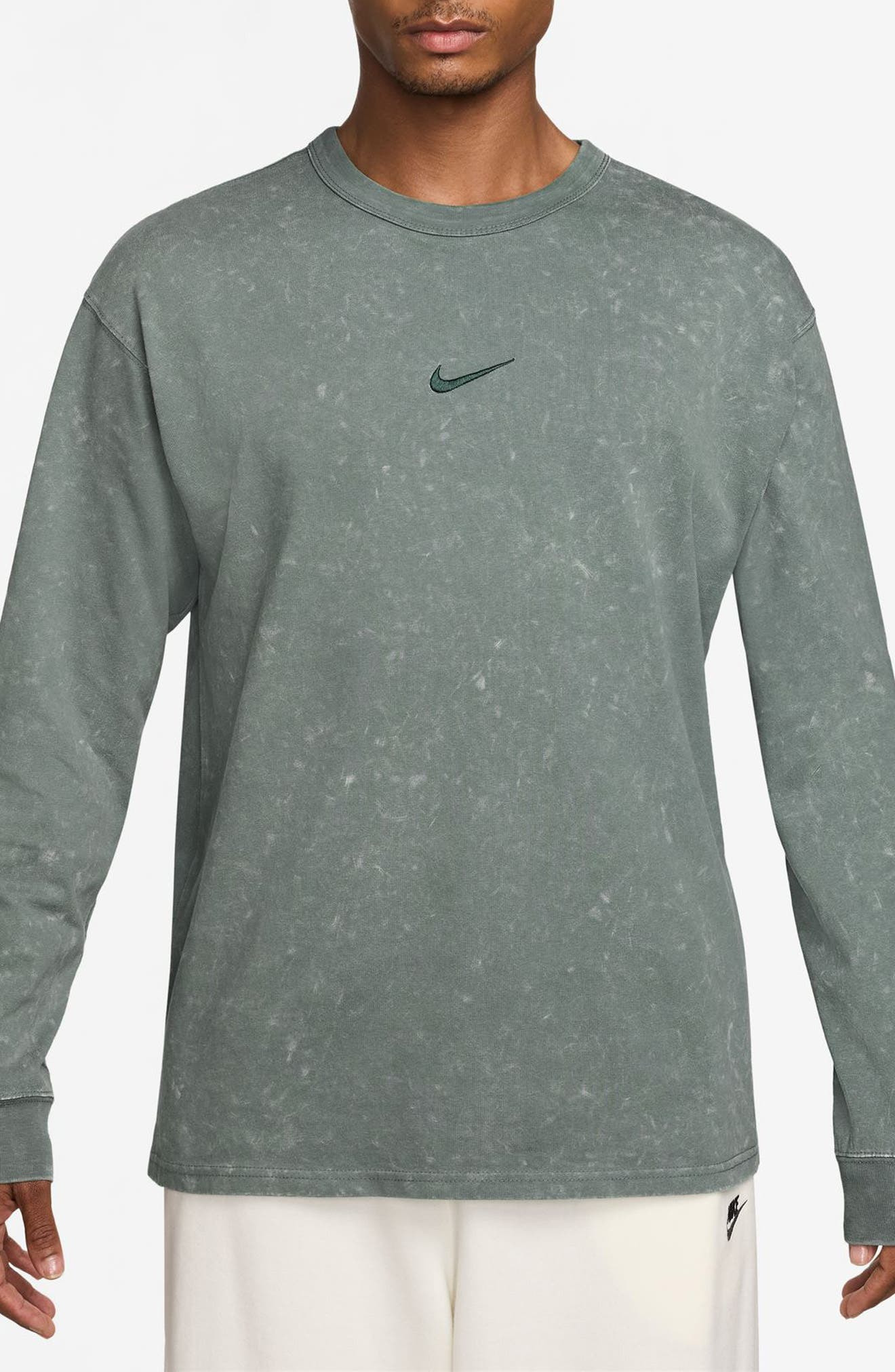 Washed and faded to look like you've worn it forever, this all-cotton T-shirt sports dark Swoosh logos on the chest and back and a fit that gives you plenty of room to move or relax. Wear it for warmups, cool-downs and everyday activities for easy, breathable comfort. Crewneck Long sleeves 100% cotton Machine wash, dry flat Imported