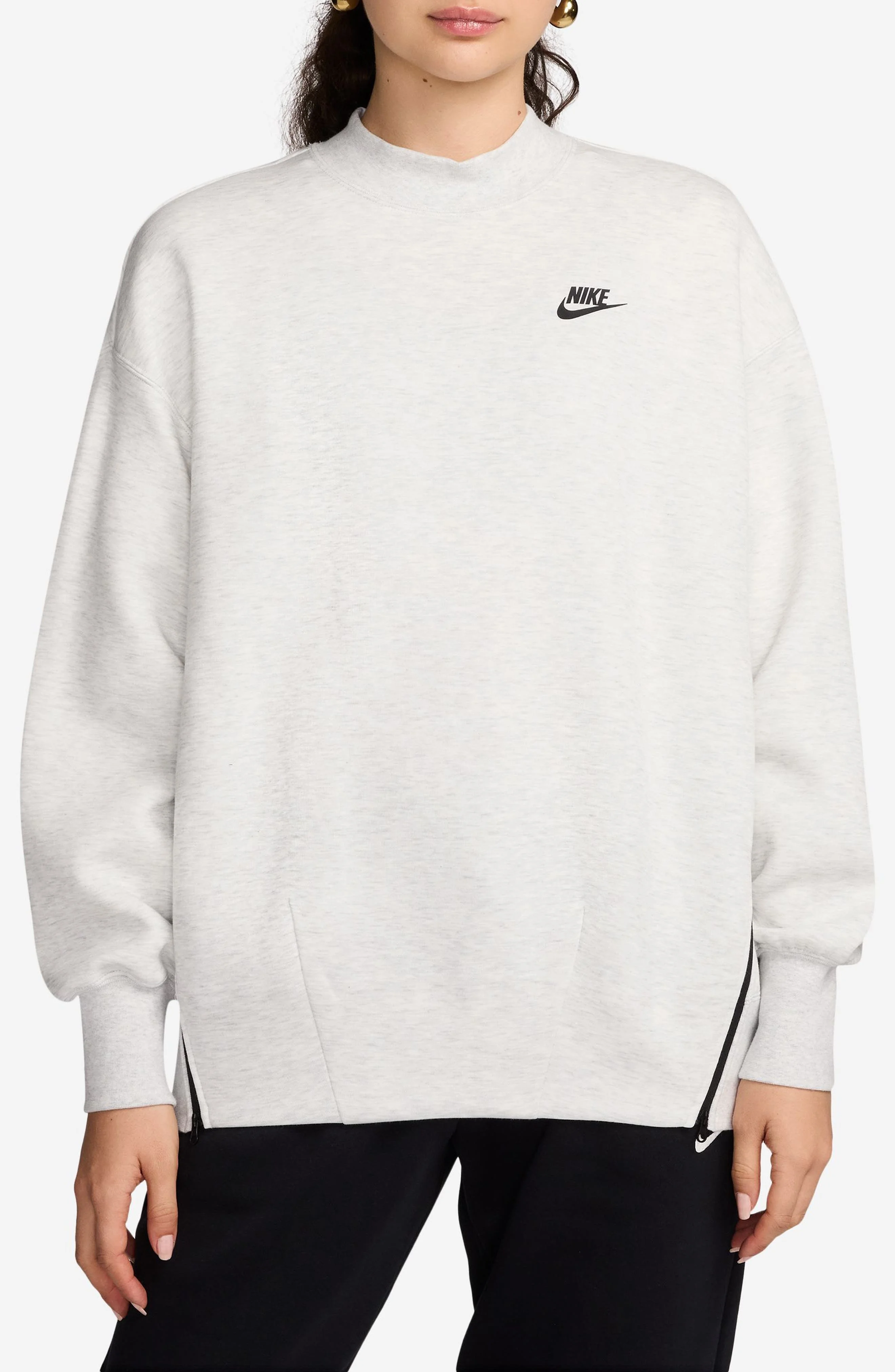 Nike Sportswear Oversize Mock Neck Tech Fleece Sweatshirt in 013 013 Ltgrey/black at Nordstrom