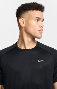 Breathable, sweat-wicking fabric delivers optimum performance and comfort in a running T-shirt that's cut to move and ready for action with precision ventilation that keeps air moving where you need it most. 28" length (size Medium) Crewneck Short sleeves Dri-FIT ADV levels up sweat-wicking technology with advanced cooling and zones of breathability to help you stay dry and comfortable 100% polyester Machine wash, tumble dry Imported