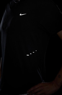 Reflective details boost visibility while a back mesh panel and Dri-FIT tech ensure breathability and comfort in this running top ready to work up a sweat. Crewneck Short sleeves Dri-FIT moisture-wicking technology 80% polyester, 20% spandex Machine wash, dry flat Imported