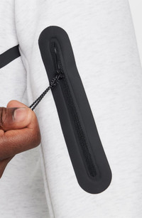 Nike's lightweight Tech fleece made with soft cotton brings all-activity comfort to a hoodie that's designed with a heritage chevron on the front and a trio of pockets on the sleeve and sides. 27" length (size Medium) Two-way front zip closure Fixed hood Sleve zip pocket; side-seam pockets 53% cotton, 47% polyester Machine wash, tumble dry Imported