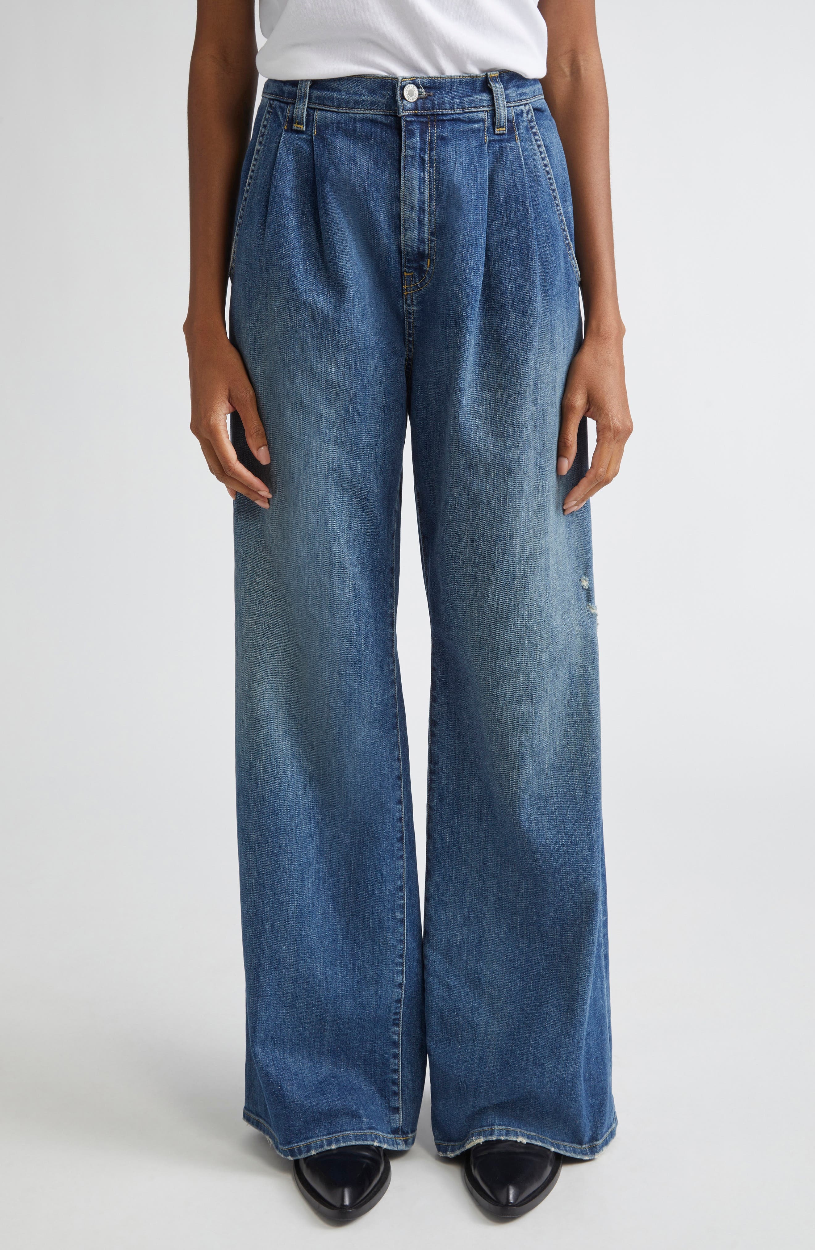 The style report is buzzing about switching things up on denim day, and these stretch-kissed trouser jeans comply in a supercute way. 33" inseam; 24" leg opening; 12 1/2" front rise; 16" back rise (size 29) 98% cotton, 2% polyurethane Machine wash, tumble dry Made in the USA of imported fabric