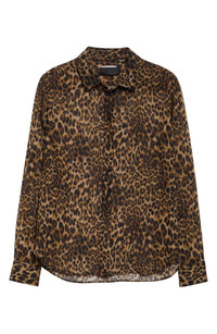 Lustrous silk brings fluid drape to this slim-cut shirt complete with tonal buttons specially dyed to complement the leopard print. Front button closure Point collar Long sleeves with button cuffs 100% silk Dry clean Made in the USA