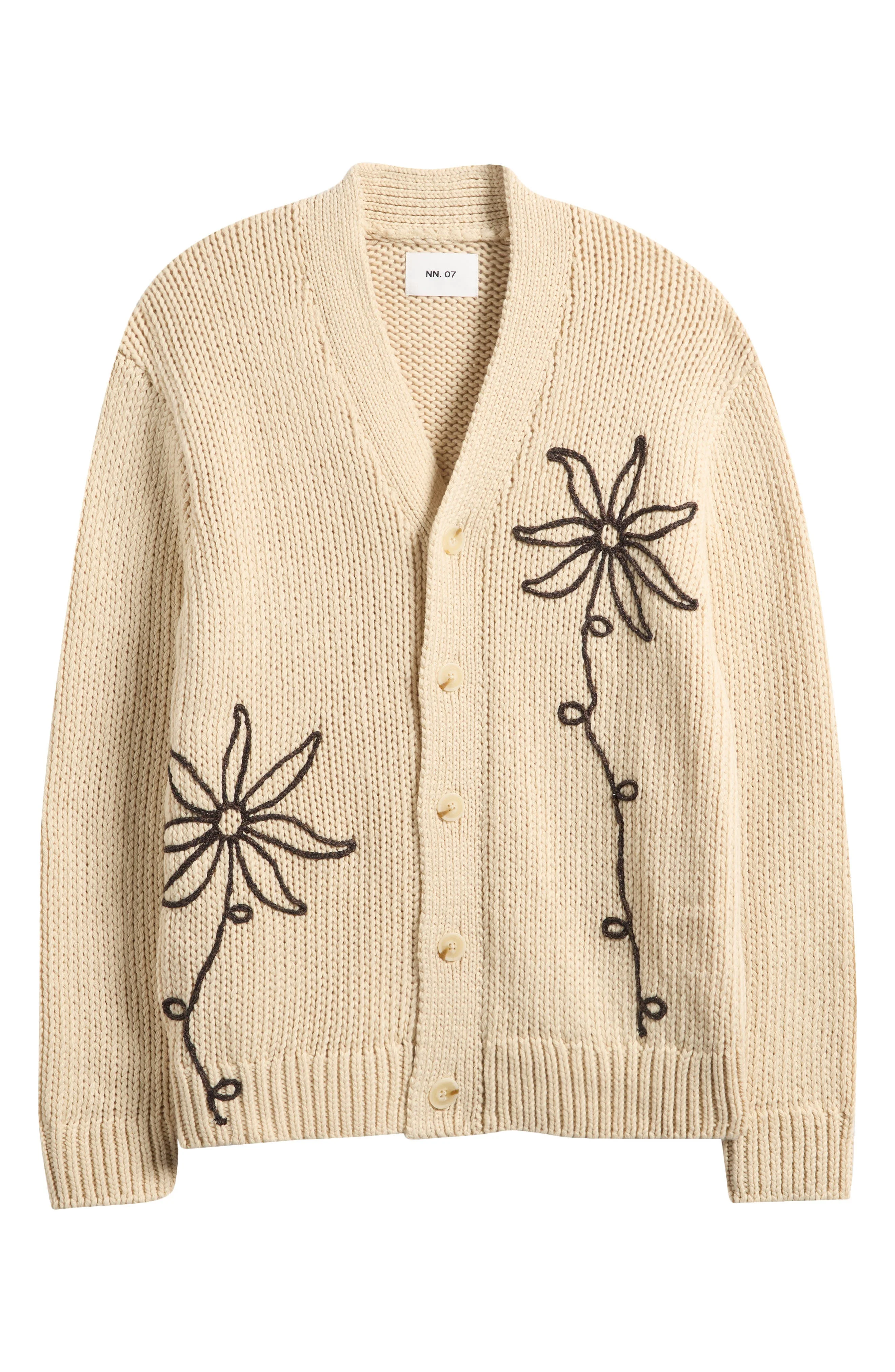 NN07 Mika 6620 Flower Embroidered Recycled Polyester Blend Cardigan in Ecru at Nordstrom