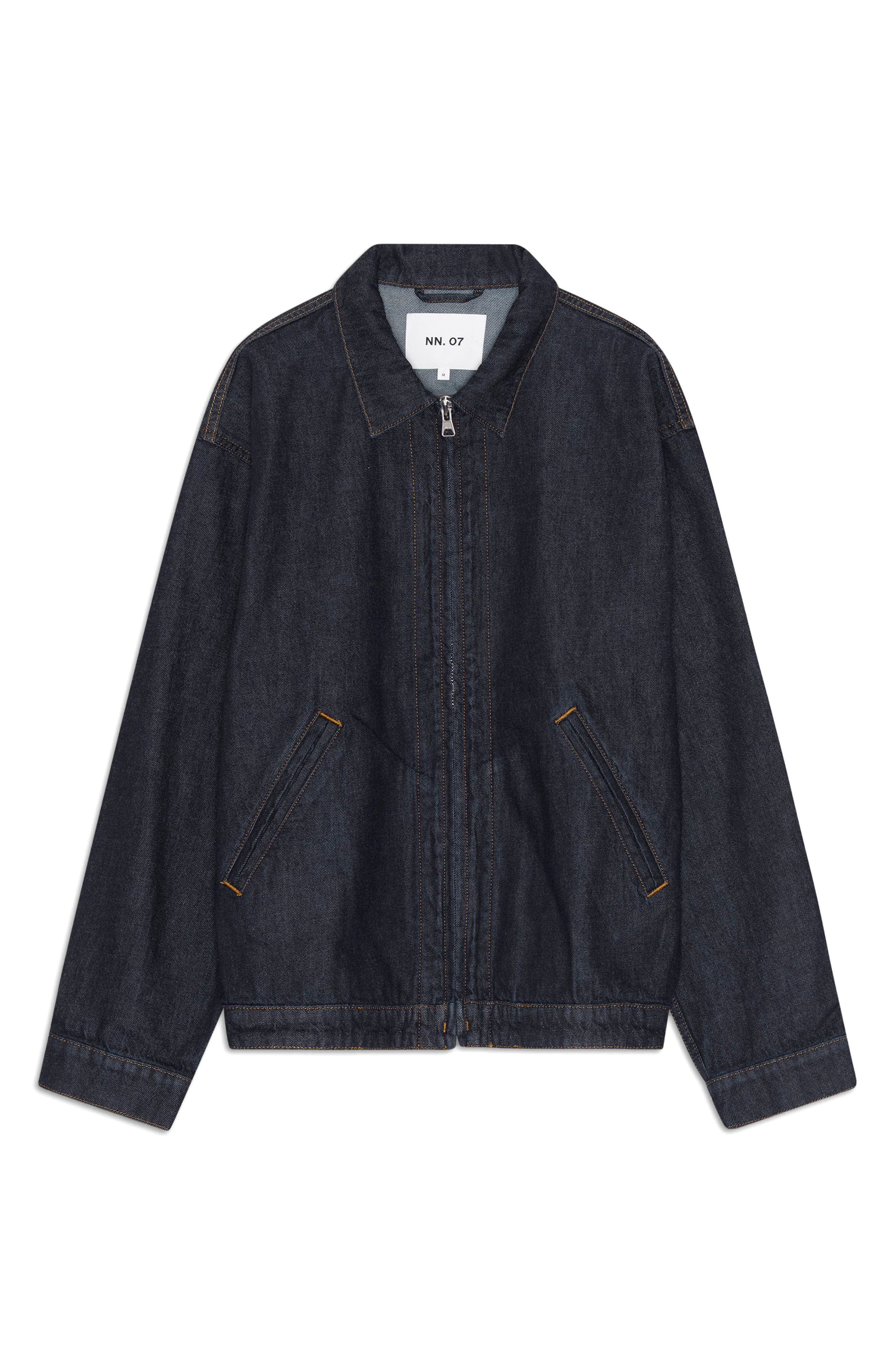 Update your denim rotation with this streamlined jacket cut from rigid organic cotton and designed in an oversized, relaxed fit so you layer up to match the season. Front zip closure Spread collar Front welt pockets 100% organic cotton Machine wash, line dry Made in Turkey