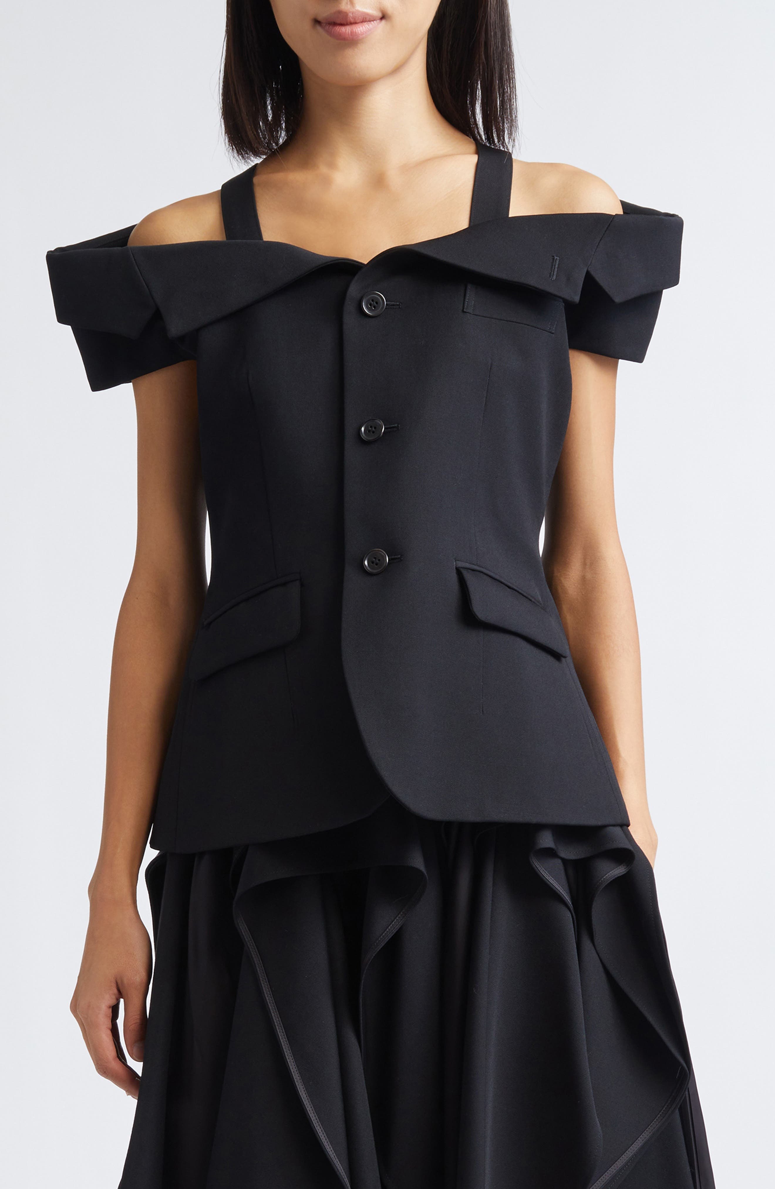 Noir Kei Ninomiya Deconstructed Wool Gabardine Jacket in Black at Nordstrom