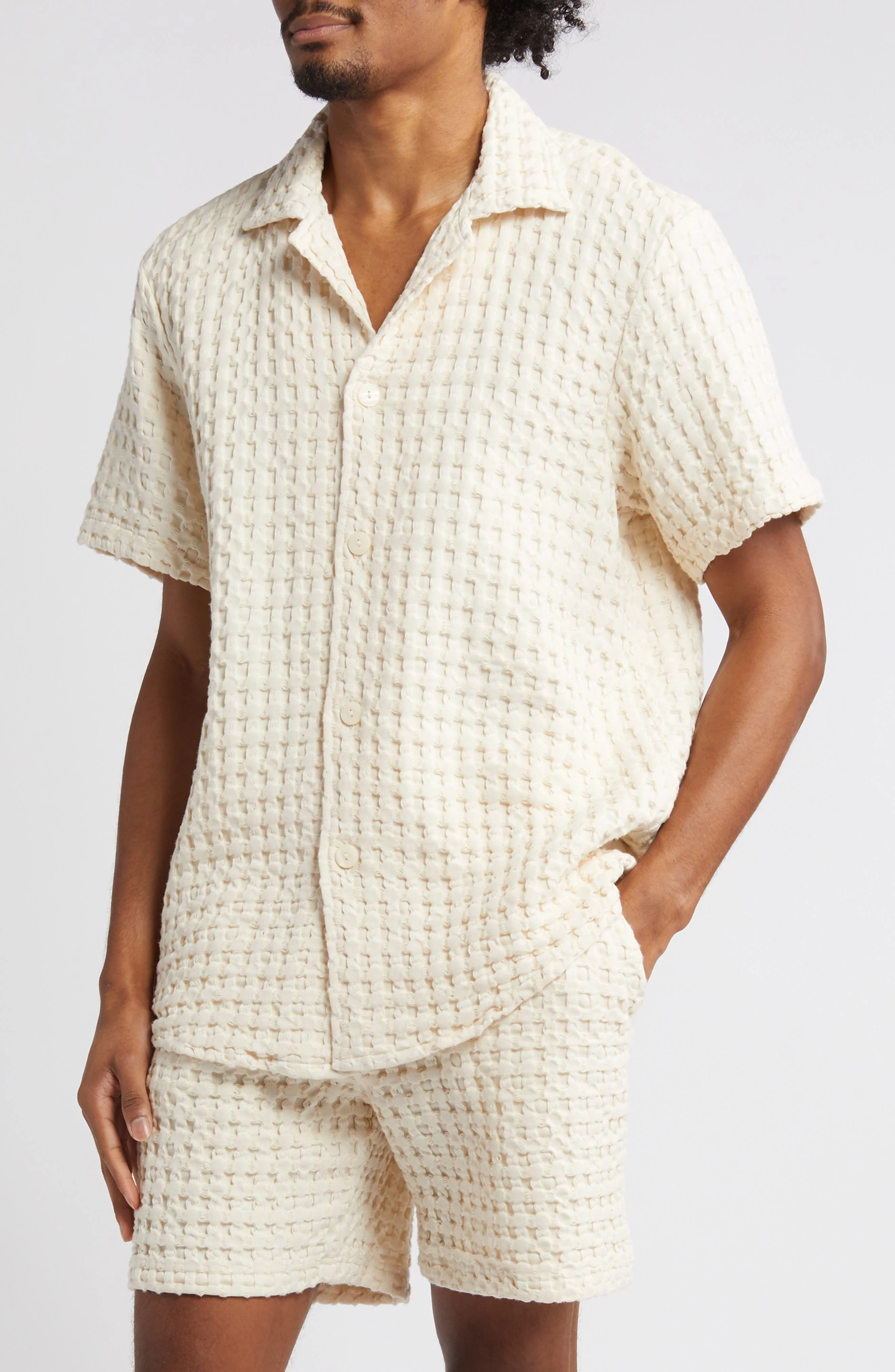 OAS Waffle Knit Camp Shirt in Offwhite at Nordstrom